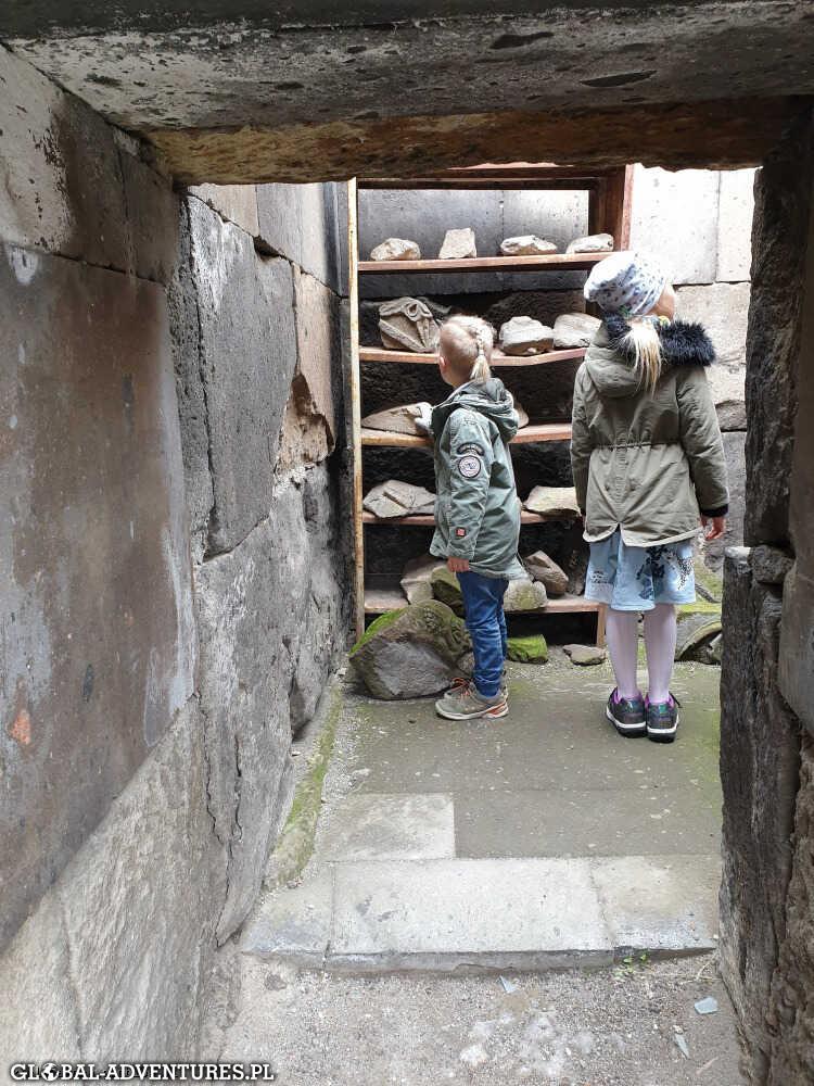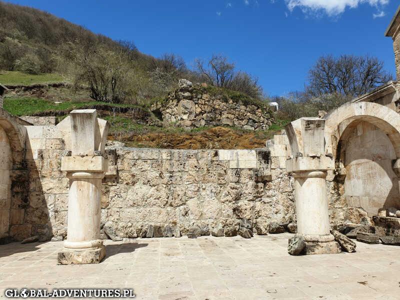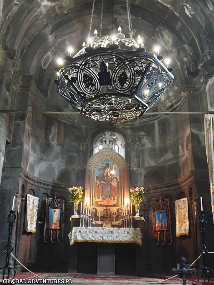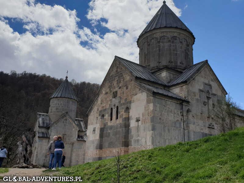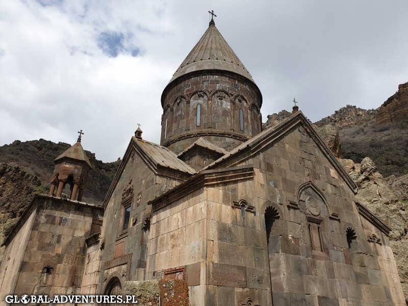 Klasztor Geghard: Pierwszy kościół wykuty w skale powstał na planie krzyża równoramiennego przed 1250 rokiem. W jego wschodniej części znajduje się grobowiec dynastii Proszian, przez który przechodzi się do drugiej świątyni w skale wykutej w 1283 roku. W 2000 roku klasztor został wpisany na listę dziedzictwa kulturowego UNESCO