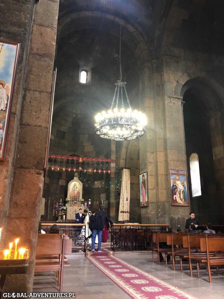 I tak już nie chciało nam się lecieć, kasy i tak pewnie nie oddadzą, także postanowiliśmy jechać samochodem, przy okazji cos zobaczyć i mieć większy luz. Samochód z kierowca 25% ceny biletów lotniczych. Kierowca przyjeżdża po nas dokładnie o 10 rano tak jak chcieliśmy. Jest to ten sam samochód i kierowca z którym jeździliśmy wczoraj. Ruszamy w stronę Katedry Musaler- wybudowana przez najbogatszego Ormianina- miliardera, który ma mnóstwo budynków w Armenii. Następnie jedziemy już w kierunku Gruzji: i zatrzymujemy w miejscowości Sevan i oglądamy Katedrę Sevan malowniczo położana nad jeziorem Sevan. Później jemy kebab z raka nad brzegiem jeziora i kierujemy się dalej do miejscowości Dilijan i kolejna pięknie położona katedra Hagharcin. Jedziemy przez góry droga M4 Erywań-Tbilisi- Moskwa, droga mega kreta, dziurawa ale nie zatłoczona, mijamy nawet dwa Tiry z Polski. Granice przechodzimy z buta, armeńska bez bagaży, gruzińska z całym majdanem. O 18 dojeżdżamy do Hotelu Vlevet w starym Tbilisi w samym centrum. Idziemy na kolacje i na spacerek i 23 jesteśmy gotowi do spania