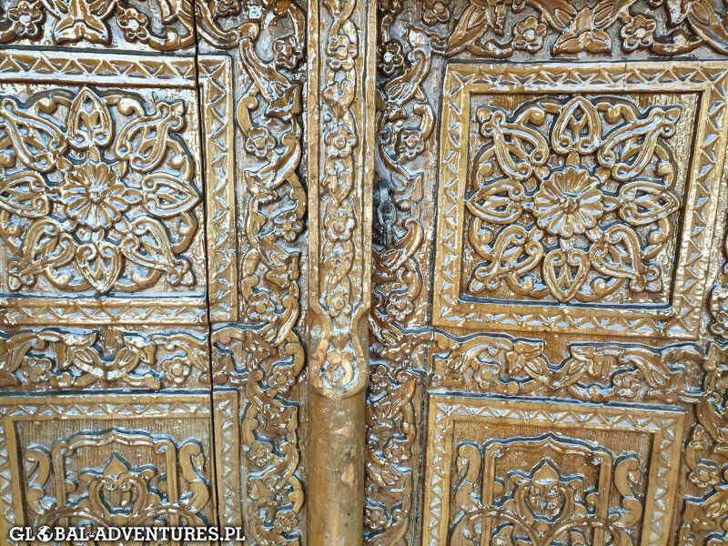 W XVII wieku władca Samarkandy, Yalangtush Bakhodur, zarządził budowę madrasahs Sher-Dor (Persian: شیردار) i Tillya-Kori (Persian: طلاکاری). Ciekawe są mozaiki tygrysie ze wschodzącym słońcem na grzbiecie, na twarzy każdego łuku madrasy, ponieważ lekceważą zakaz islamu przedstawiający istoty żywe na budynkach religijnych, zwłaszcza że reprezentują one bardziej starożytne motywy religijne mitryki perskiej . W architekturze jest trochę wpływu zoroastryzmu.