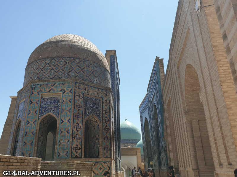Zespół Shah-i-Zinda obejmuje mauzolea i inne rytualne budowle z 9-14 i 19 wieku. Imię Shah-i-Zinda (co znaczy „żyjący król”) jest związane z legendą, że Kusam ibn Abbas, kuzyn proroka Mahometa, jest tutaj pochowany. Przybył do Samarkandy z inwazją arabską w VII wieku, aby głosić islam. Popularne legendy mówią, że został ścięty za wiarę, ale nie umarł, wziął głowę i poszedł do głębokiej studni (Garden of Paradise), gdzie nadal żyje.