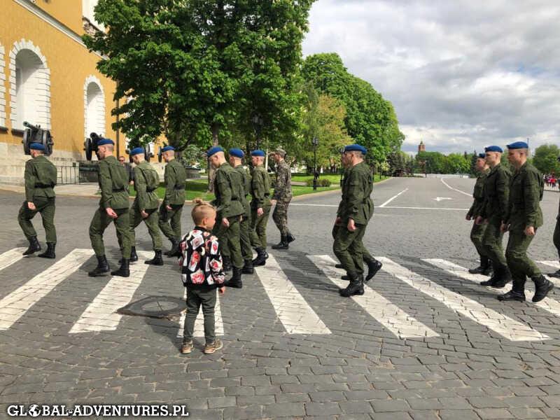 Na granicy , kolejki mega, ale szybko ustawiamy się do Russian Citizen gdzie idzie szybko, a tam całkowite zero pytań, skanowanie paszportów i wiz i witamy w Moskwie ; ) Jest 8 rano + 1h do Polski. Jedziemy Autobusem 35 minut i przesiadamy się na metro gdzie po 8 przystankach wysiadamy w centrum Moskwy. Check-in w Moscow Marriott Grand Hotel i po śniadaniu i chwilowym ochłonięciu ruszamy na zwiady. Trochę pada.. ale szybko przechodzi, kierujemy się w strone Kremla i Placu czerwonego, jest sporo ograniczeń bo jutro 9 May dzień zwycięstwa i wielka parada. Spacerujemy wokół kremla, obiad, jakieś zakupy, gawęda z miejscowymi i ok. 20 wracamy. Dziś w nogach ponad 12 km a dzieciaczki na nogach 21 godzin o 22 padają… Zobaczymy co jutro…
