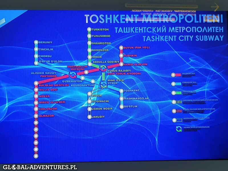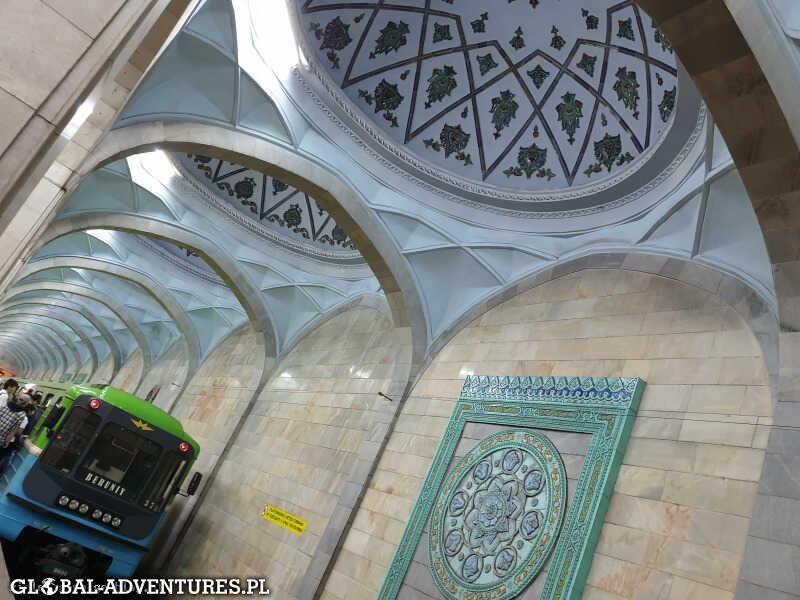 Ruszamy na tour po Tashkent. Sapcerkiem idziemy na Amir Temur Squere i wcześniej ogarniamy jeszcze Museum of Timurdis. Nastepnie hotel Uzbekistan, rosyjski imperialny budynek, hotel który swoje lata swietnosci ma już dawno za sobą. Samochody które tutaj jezdza to w 99% chryslery do tego jeszcze w koloze biały- to się nazywa rownosc. Testujemy tez metro jedziemy na stacje Tashkent sprobowac kupic bilety na pociąg do Samarakanda… niestety blietow nie ma szans kupic, czarny rynek ma się wyśmienicie… za to przystanki metra robia wrazenie. Wieczorem wracamy do hotelu, dziś przeszliśmy ponad 12km.