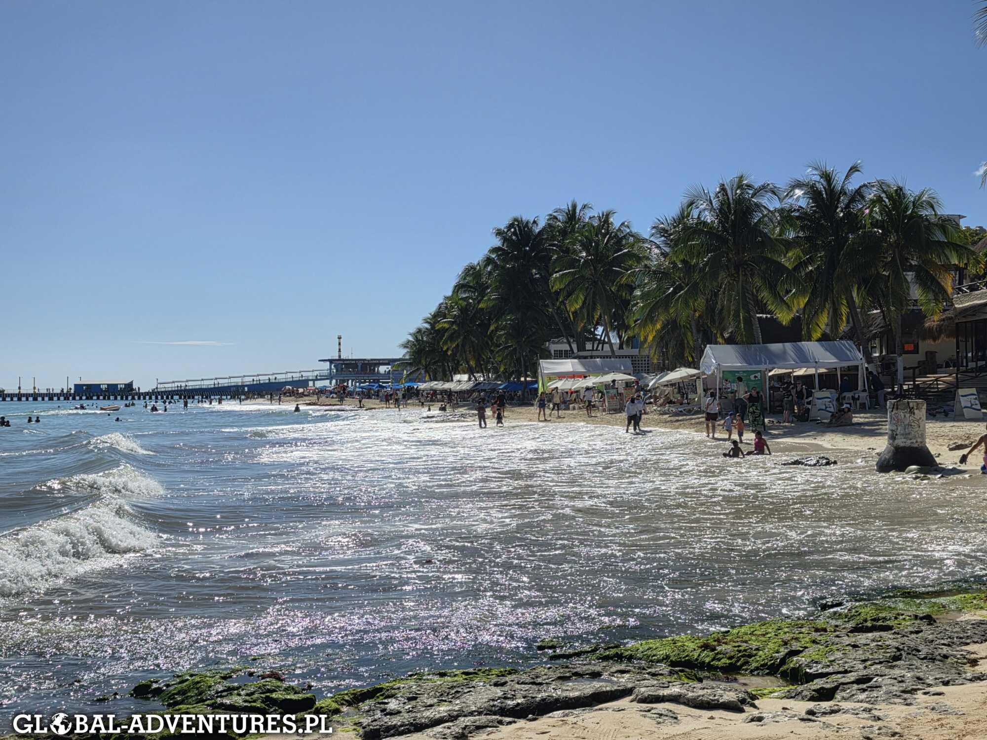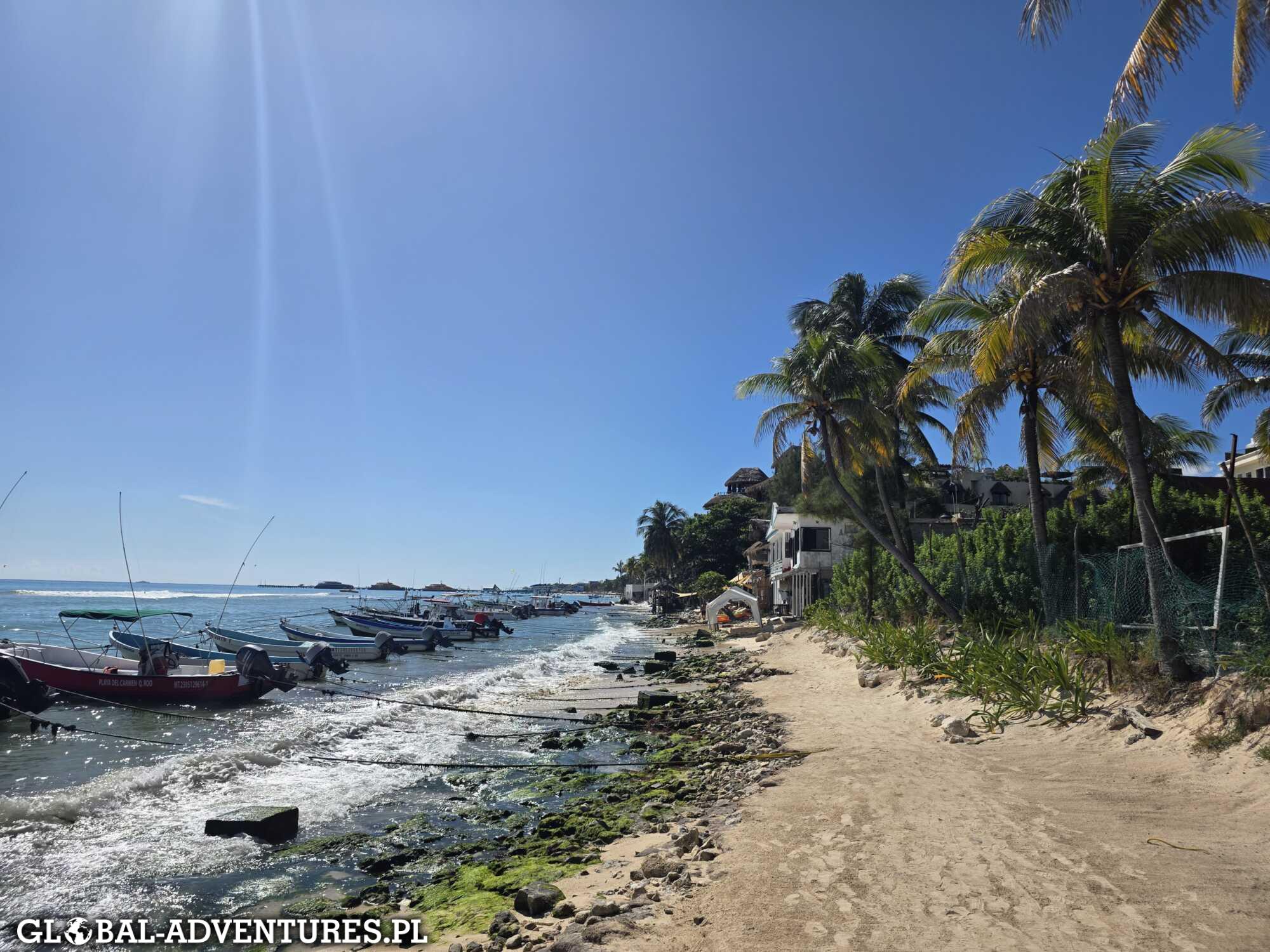 Lubimy latać na zachód — dzień zaczyna się wtedy szybko i od razu mamy go całego dla siebie. Jest czas, żeby przeżywać i oswajać nowe miejsce. Dziś ogarniamy Playa del Carmen. Hotel mamy w samym centrum — jedną przecznicę od głównej ulicy i jedną od plaży. A mimo to cisza, zieleń i bardzo klimatyczna okolica, trochę jakby w środku dżungli. Mały, fajny basen i bardzo przyjemna atmosfera. Dobre miejsce na start. W ciągu dnia spacerujemy po Playa del Carmen na spokojnie. Jemy dobre jedzenie, pijemy kawkę, bez pośpiechu. Po raz pierwszy kąpiemy się w Morzu Karaibskim. Pogoda jest piękna, świeci słońce. Wieczorem jeszcze kolacja urodzinowa Luli. Dziś grill i dobre mięso. Około 22:30 jesteśmy już w łóżkach i po prostu padamy.