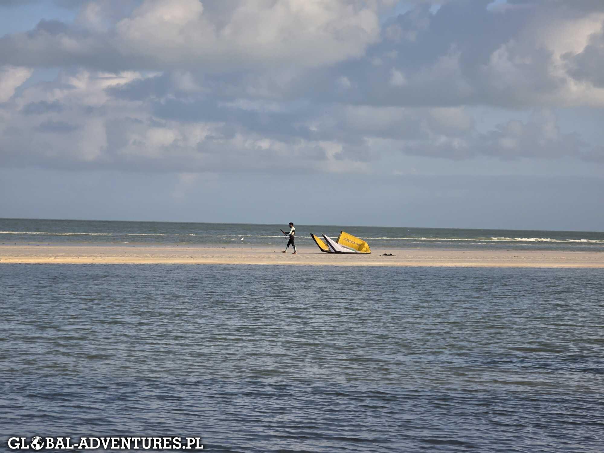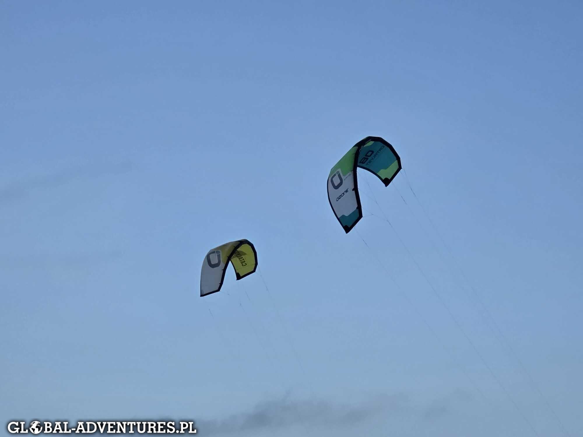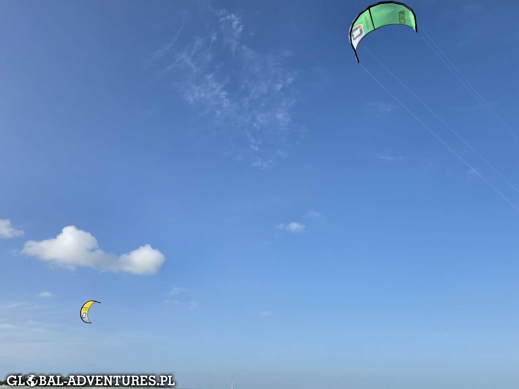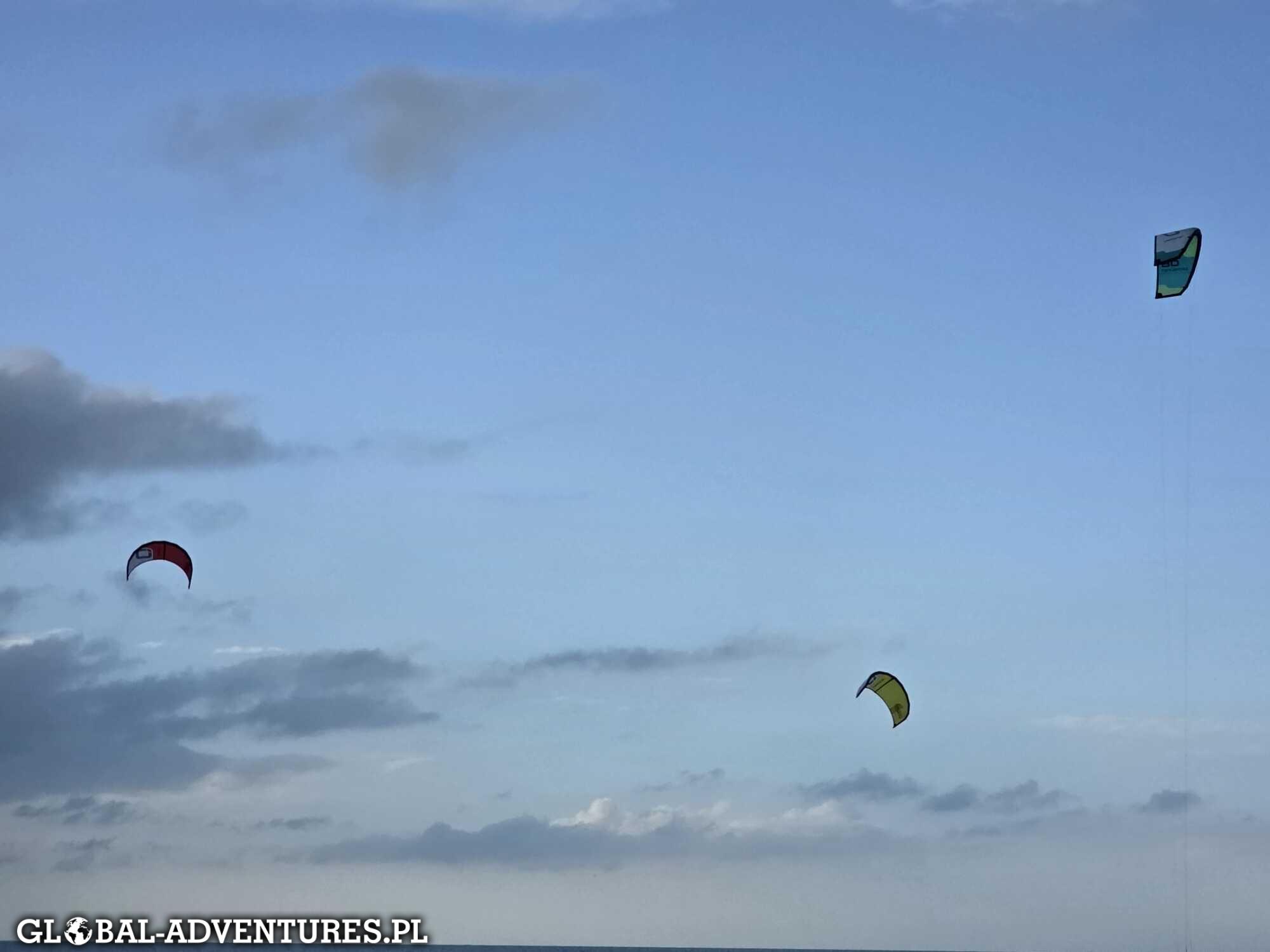 Pierwszy dzień kitesurfingu. Od rana rodzice kontynuują swoją przygodę z kitesurfingiem.