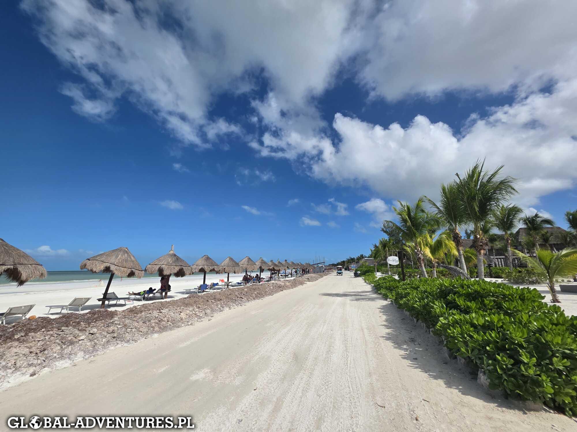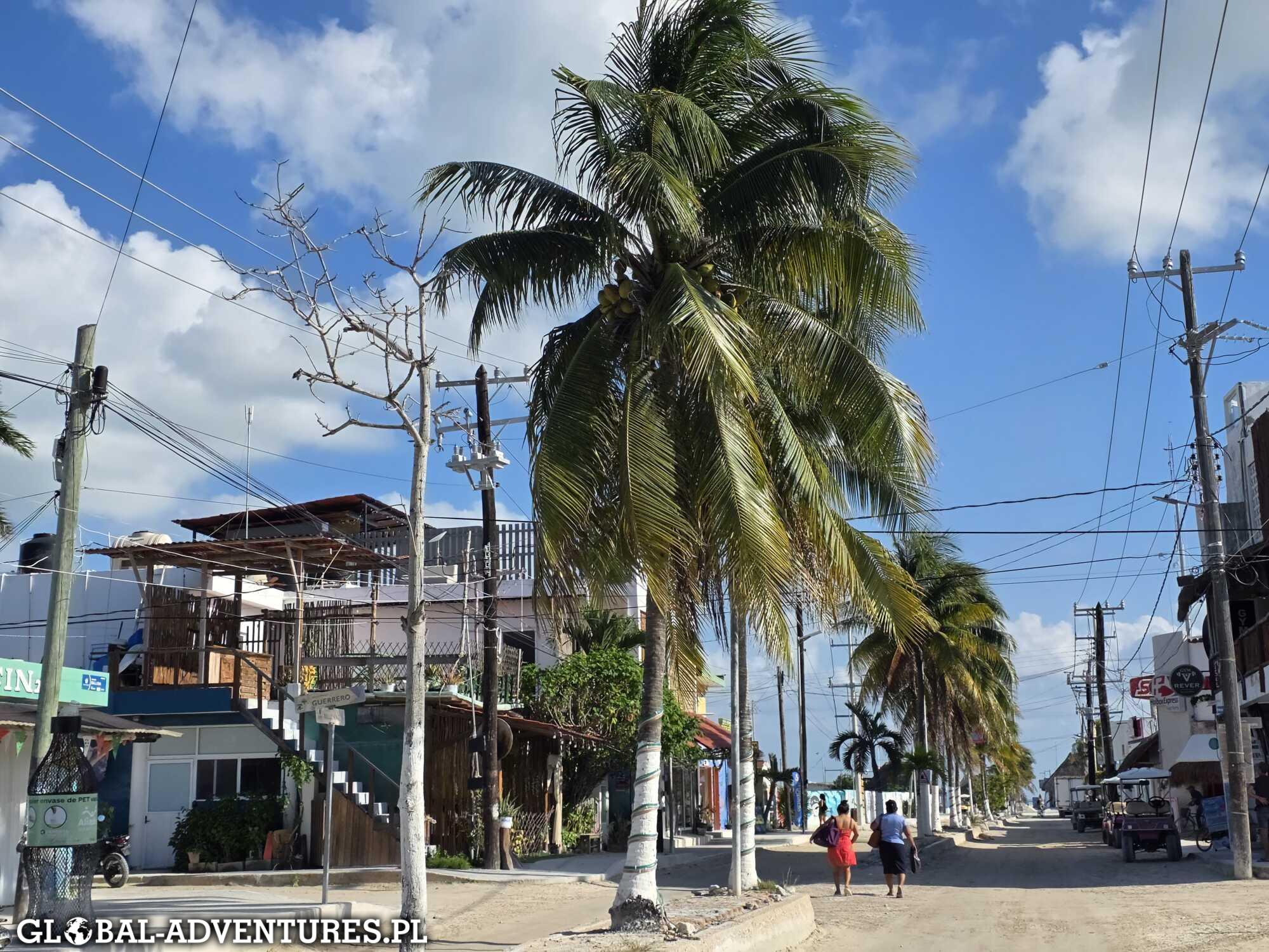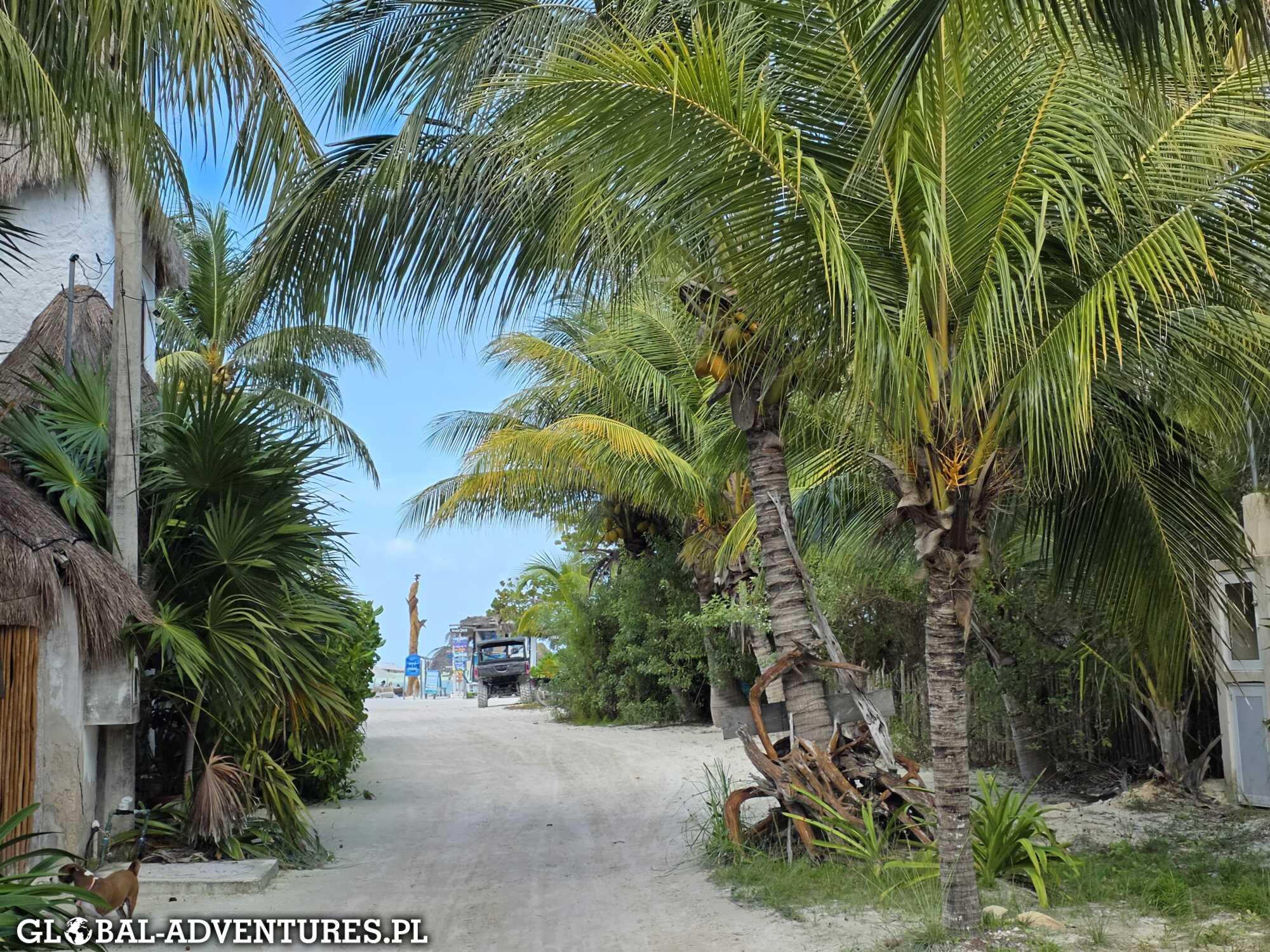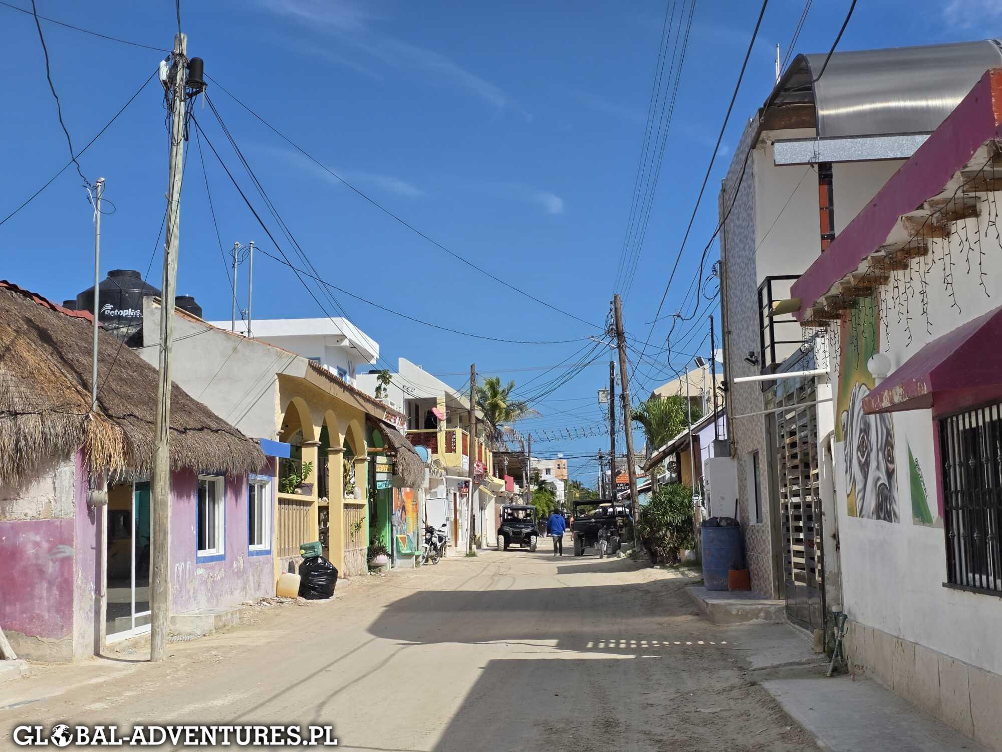 Około 13:00 jesteśmy z powrotem w hotelu, a potem ruszamy na obchód wyspy. Holbox jest piękna, kolorowa i totalnie wyluzowana. Atmosfera jest naprawdę super. Piasek zamiast asfaltu, spokojni ludzie, zero pośpiechu. Kolory robią robotę — piasek, niebo, morze i zieleń. Dokładnie nasza ulubiona kombinacja.