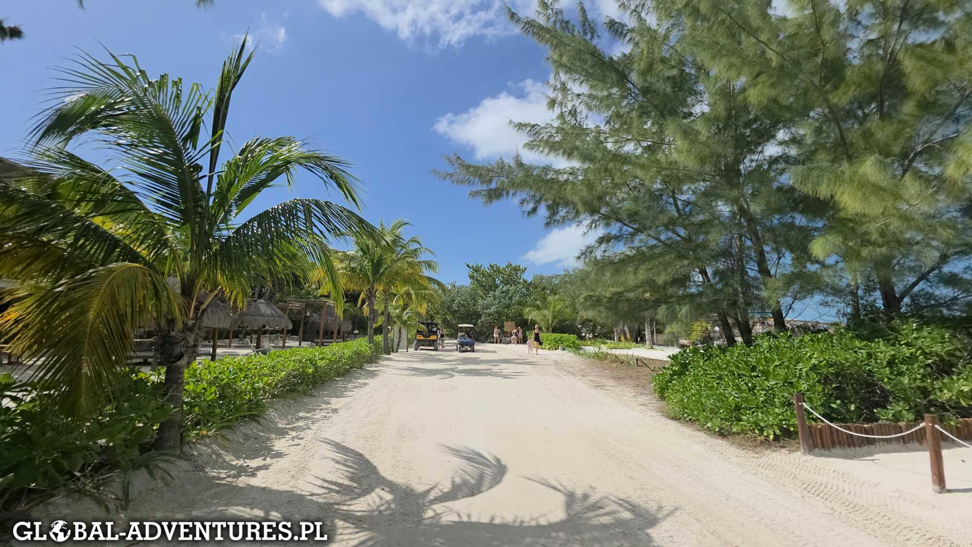 Robimy sobie rundkę po wyspie. Nie ma tu asfaltowych dróg — są tylko piaskowe uliczki. Wygląda to świetnie. Zero pośpiechu, totalny slow vibe. Ludzie jeżdżą melexami, rowerami, wszędzie luz i uśmiech. Klimat robi robotę.