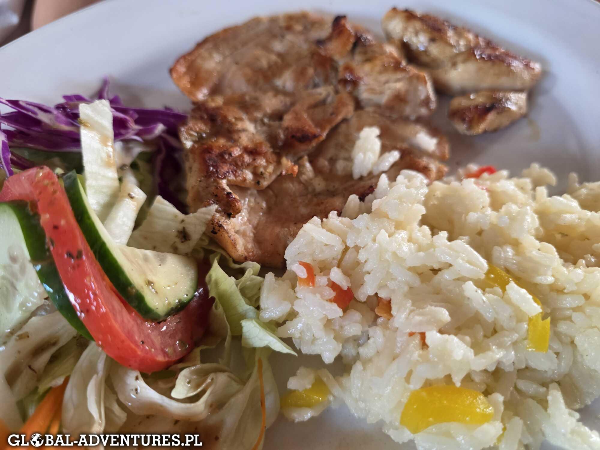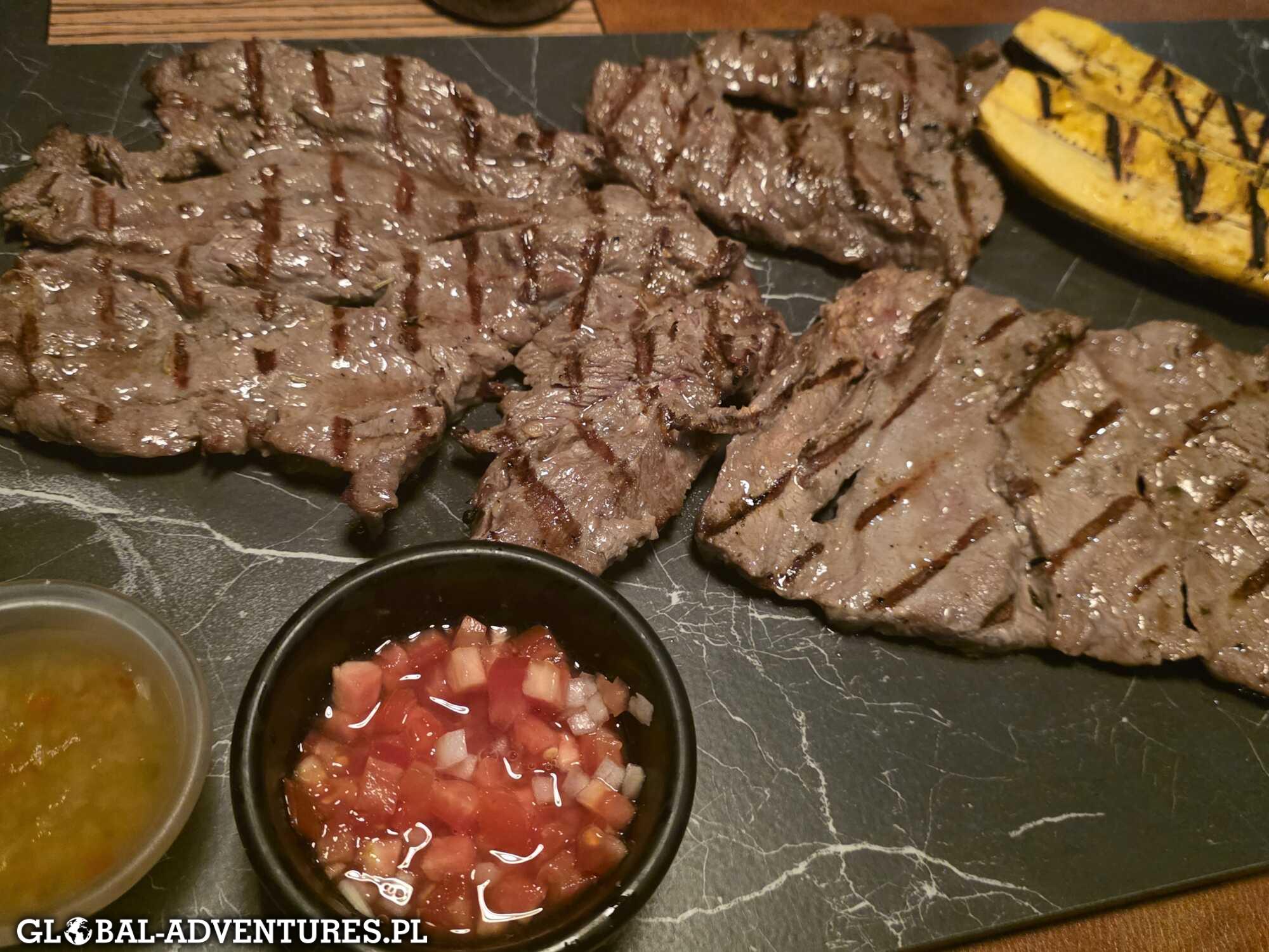 Kolacja na koniec dnia — musimy się spieszyć, bo większość lokali zamyka się około 21–22. Wpadamy do jednej restauracji o 21:10 — pusto, ale nas przyjmują. Jemy spokojnie. O 22:30 jesteśmy z powrotem w hotelu.