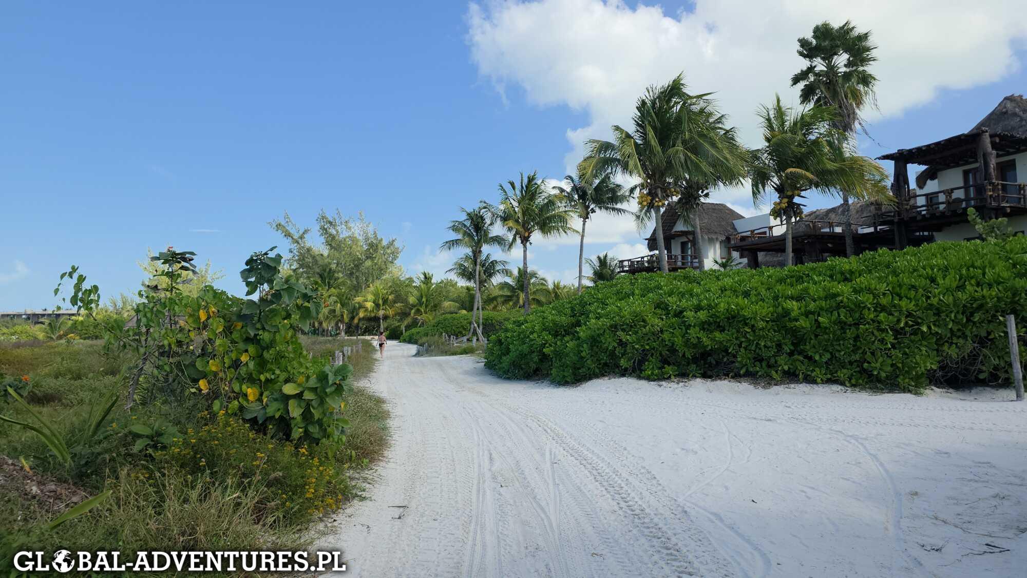 Kończymy około 11:30 i wracamy do hotelu. Szybki lunch, chwila odpoczynku i ruszamy plażą w stronę zachodniej części wyspy. Idziemy spokojnie, bez planu, ciesząc się widokami, światłem i tą chwilą. Holbox w takim tempie robi robotę.