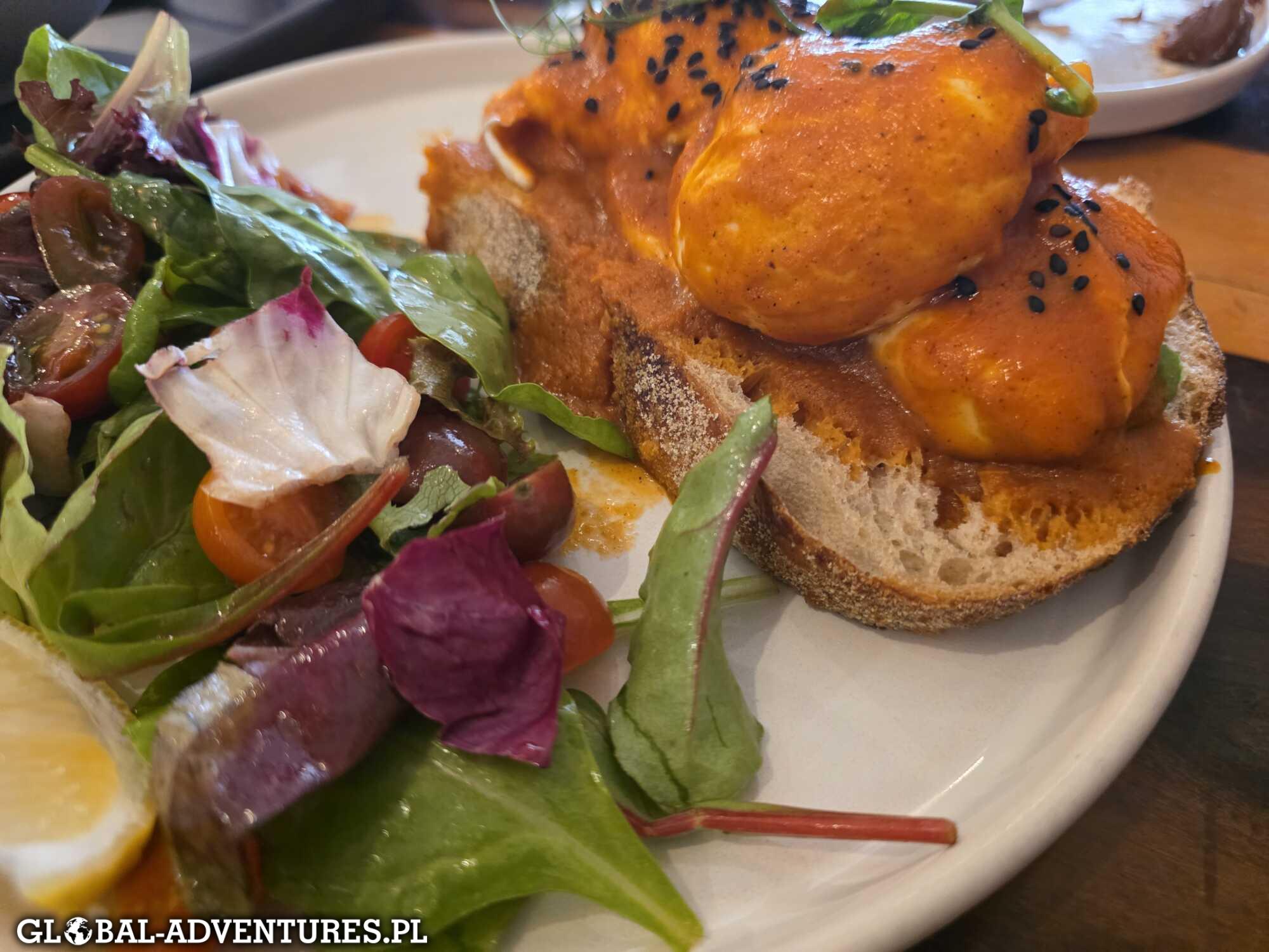 Najpierw kawa, potem szukamy miejsca na śniadanie / lunch. Niestety dalej mamy niefarta do jedzenia — jest bardzo, bardzo średnio. Nawet mięso nie ratuje sytuacji.