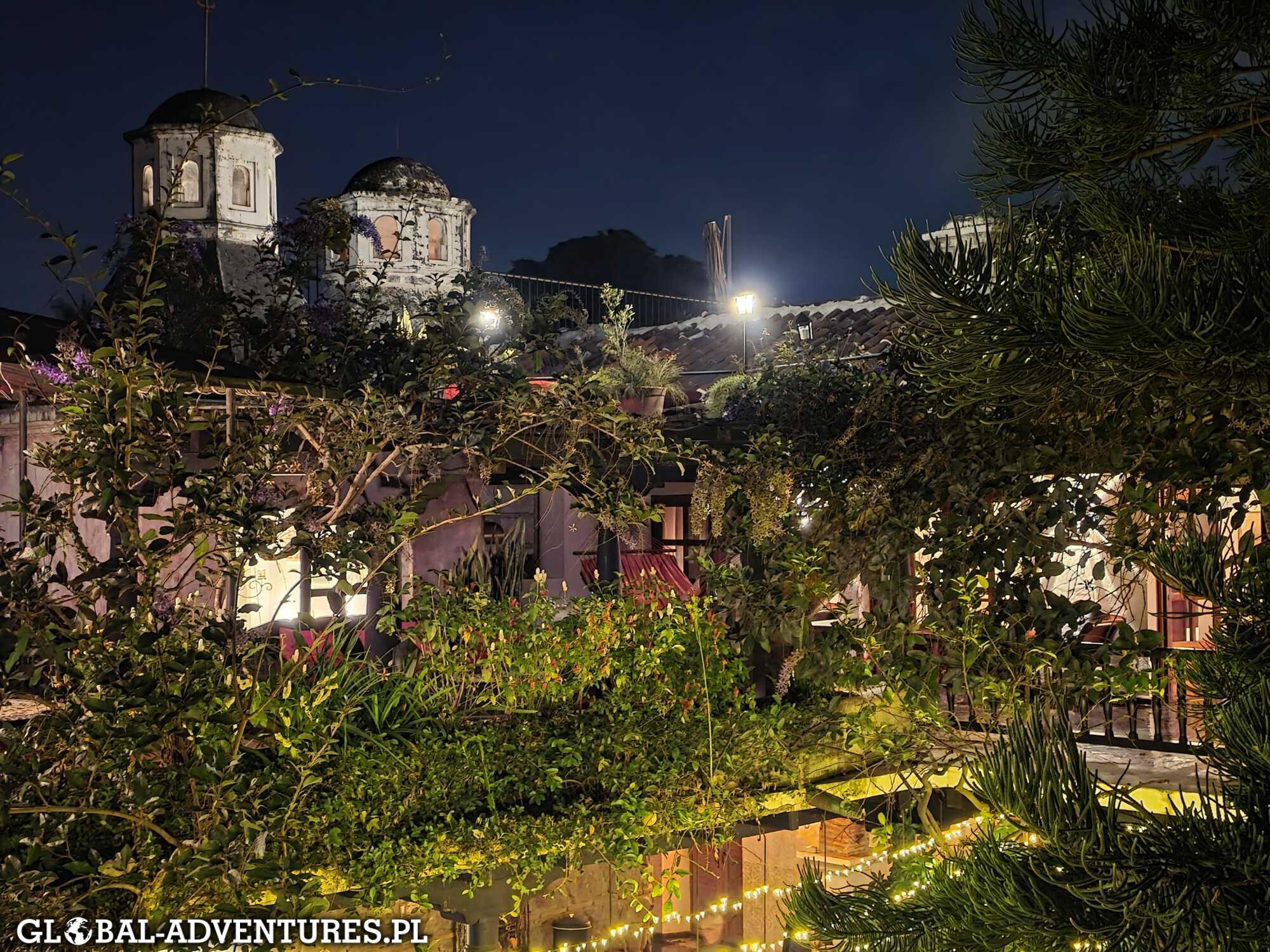Pierwszy przystanek — kuchnia gwatemalska. Niestety… średnio. Nie trafia w nasze smaki. Idziemy dalej, spacerujemy po starym mieście i mamy już upatrzony koreański grill. O 20:30 dostajemy stolik i w końcu najedamy się do pełna. Bardzo dobre, świeże jedzenie — dokładnie tego było nam trzeba. Na koniec jeszcze spacer klimatycznymi uliczkami Antigua Guatemala. Około 22:30 wracamy do hotelu. Długi dzień. Dużo zmian dużo drogi.