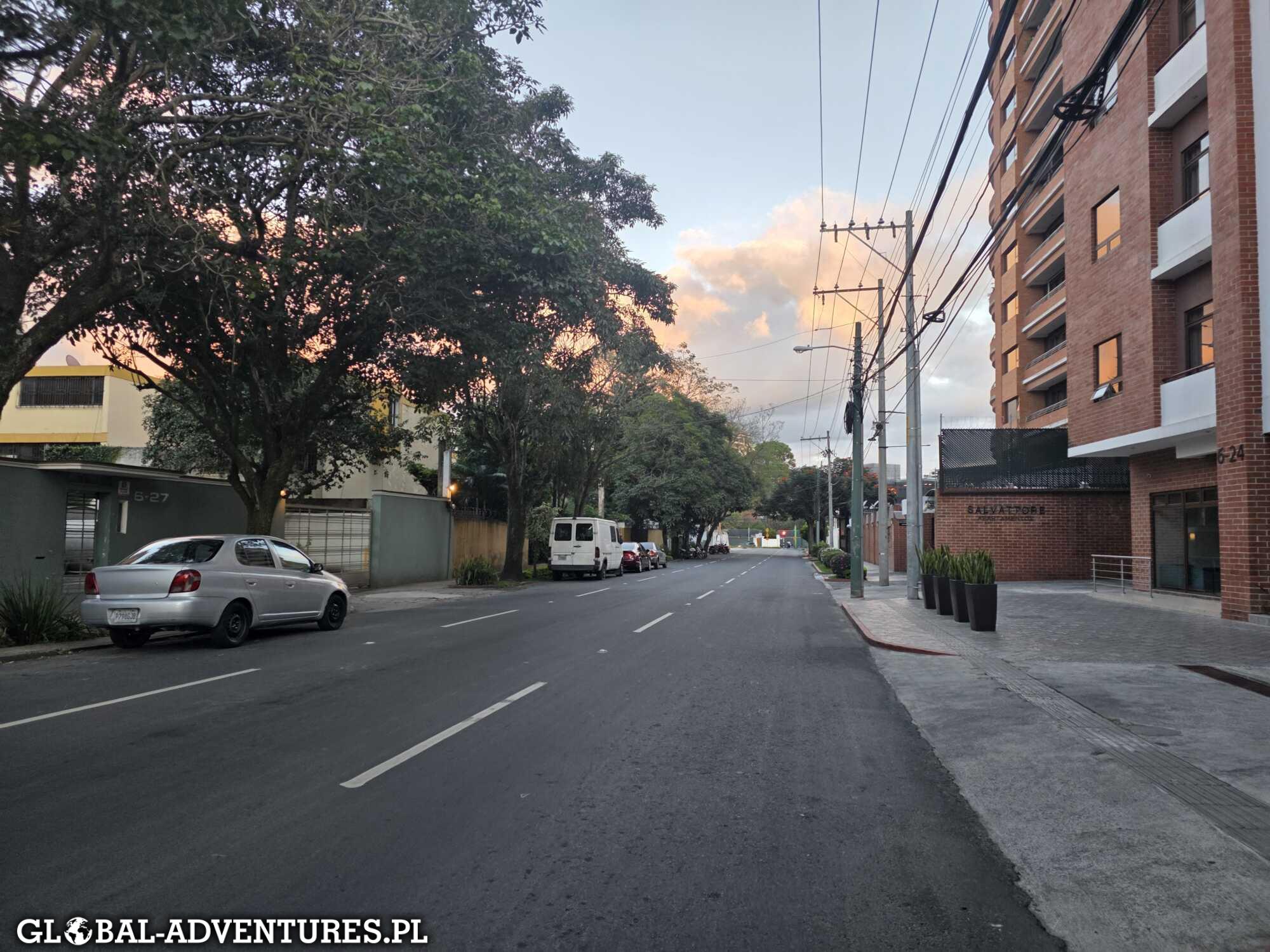 Mieszkamy w samym centrum w Zonie 10. Od rana w poszukiwania kawki i śniadania czujemy, że to jest dziwny dzień. Na ulicach prawie nie ma ludzi. Restauracje i sklepy są bardzo podstawowe. Większość hoteli nie organizuje żadnych imprez, w sklepach ktoś tam pracuje, w restauracjach podobnie, ale realnie nie ma gdzie zjeść. Albo wszystko jest pozamykane, albo za chwilę się zamyka. Spacerujemy po dużym mieście, a wokół totalna pustka. Dość surrealistyczne uczucie. Jedynym miejscem, gdzie faktycznie są ludzie, jest ogromne centrum handlowe Oakland Mall. I tu szok — centrum jest mega nowoczesne i pełne ludzi. Serio, robi większe wrażenie niż Dubai Mall. Kręcimy się tam chwilę, jemy jakiś lunch, pijemy kawę. Ogólnie jedzenie w Gwatemali nas nie zachwyca. Produkty są raczej słabej jakości, serwis średni, więc kulinarnie nie jesteśmy szczęśliwi.