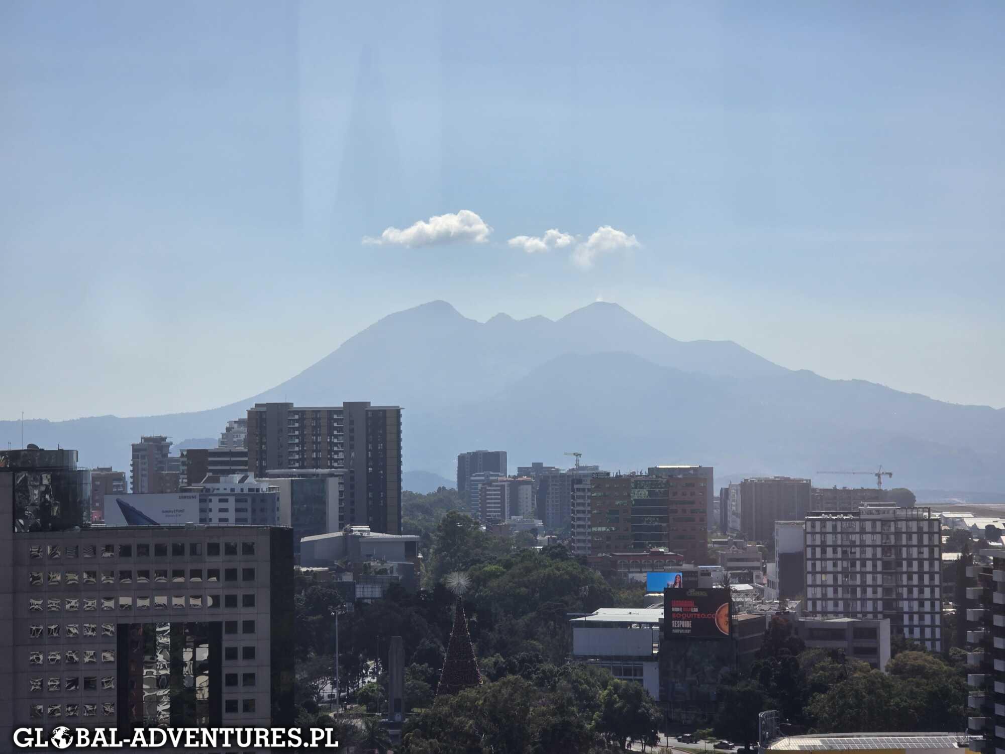 Meldujemy się w dystrykcie 10, tym razem hotel sieciowy — Wyndham Garden Guatemala City. Całkiem spoko. Mamy trzy duże łóżka, więc każdy śpi wygodnie, plus widok na miasto.