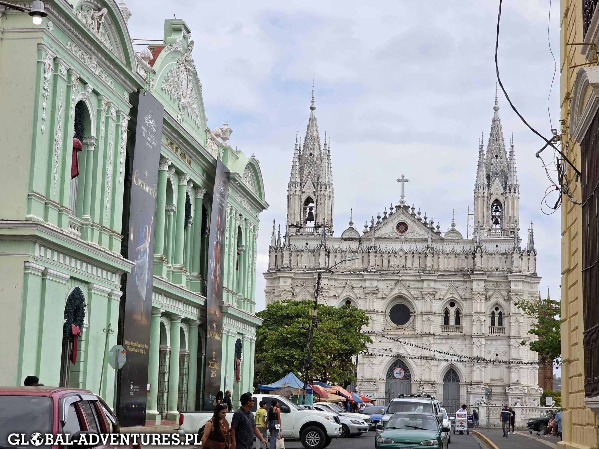 Pierwszy przystanek to Lago de Coatepeque, czyli wulkaniczne jezioro Coatepeque. To jedno z najbardziej znanych miejsc w Salwadorze. Jezioro powstało w kalderze wulkanu, a woda ma turkusowy kolor, dziś akurat jest pochmurno wiec nie jest spektakularnie. Kolejny punkt to Santa Ana — trzecie co do wielkości miasto kraju. Leży około 70 km na zachód od San Salvador, na wysokości mniej więcej 720 m n.p.m., niedaleko wulkanu Santa Ana i jeziora Coatepeque. Miasto zostało założone w 1708 roku. Spacerujemy po centrum i od razu rzuca się w oczy kolonialna architektura. Największe wrażenie robi Catedral de Santa Ana — ogromna, neogotycka katedra, bardzo masywna i dominująca nad placem. Obok jest ratusz i teatr. Uliczki są klimatyczne, ale jednocześnie widać dużą biedę. Dużo zaniedbanych budynków, prostych sklepów, kontrast pomiędzy architekturą a codziennym życiem mieszkańców.