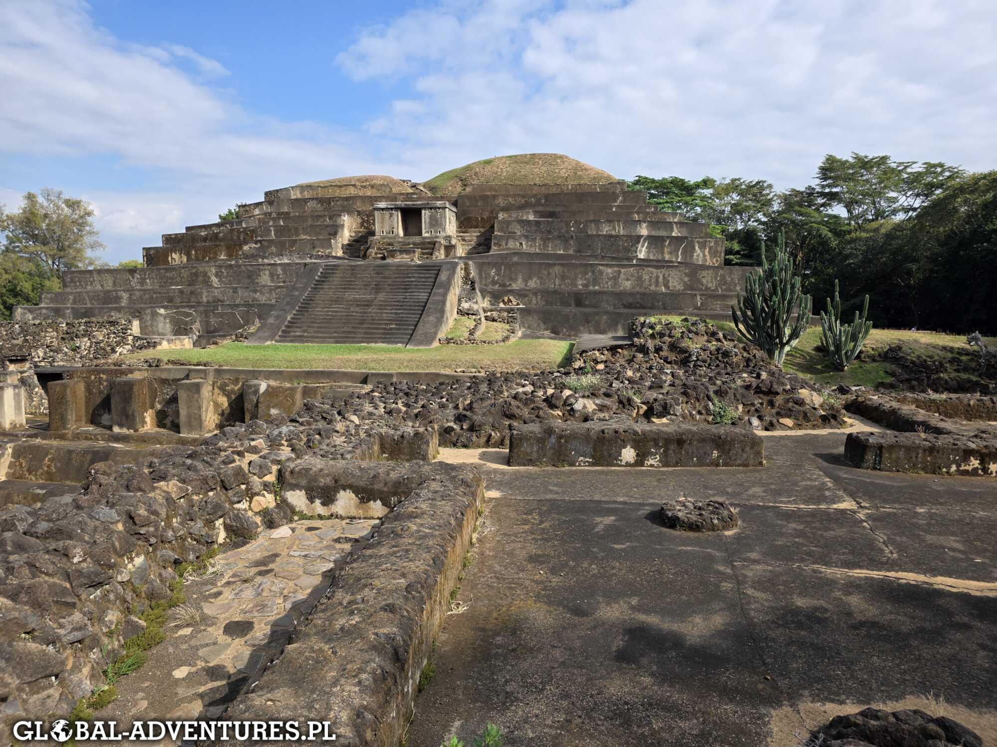 Następnie jedziemy do Parque Arqueológico Tazumal. To jedno z najważniejszych stanowisk archeologicznych w Salwadorze i dawny ośrodek kultury Majów. Tazumal to spokojne miejsce z widocznymi piramidami i ruinami — bez tłumów, bardzo czytelne i dobrze utrzymane. Po drodze zatrzymujemy się jeszcze na chwilę przy Laguna Cuzcachapa. Niewielkie jezioro przy Santa Ana. Raczej krótki postój — bardziej jako ciekawostka i chwila przerwy w trasie.