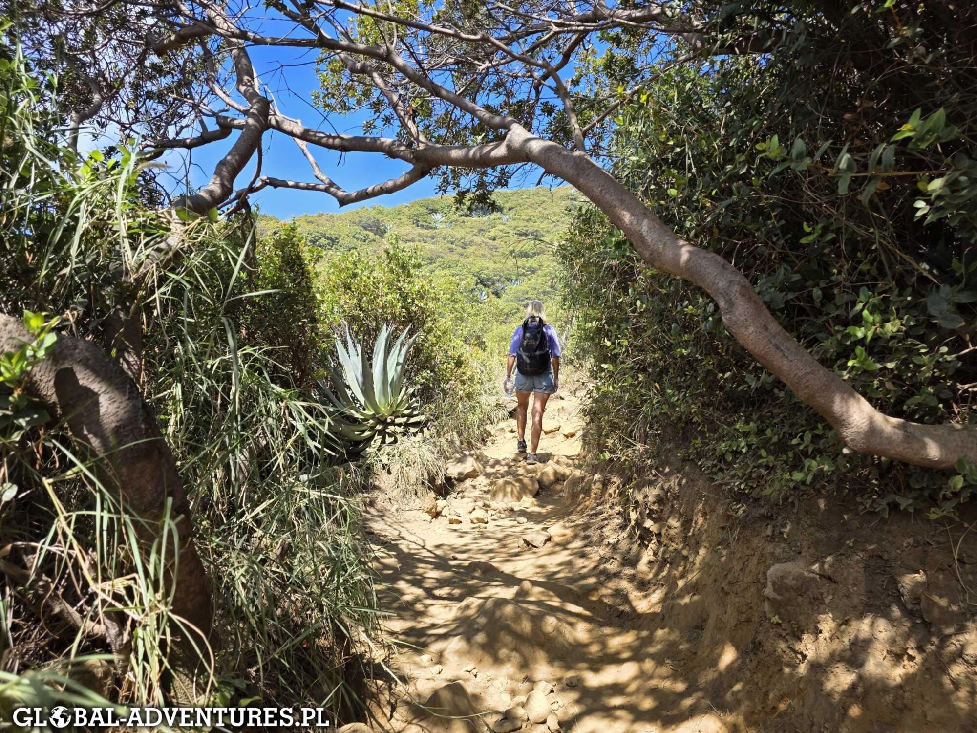 Hiking jest konkretny. Około 1,5 godziny, 3 km, 300 metrów. Cały czas pod górę. Momentami naprawdę ciężko — puls potrafi podskoczyć pod 165, czyli blisko odcięcia. Ale idziemy dalej. Na górze — warto było.