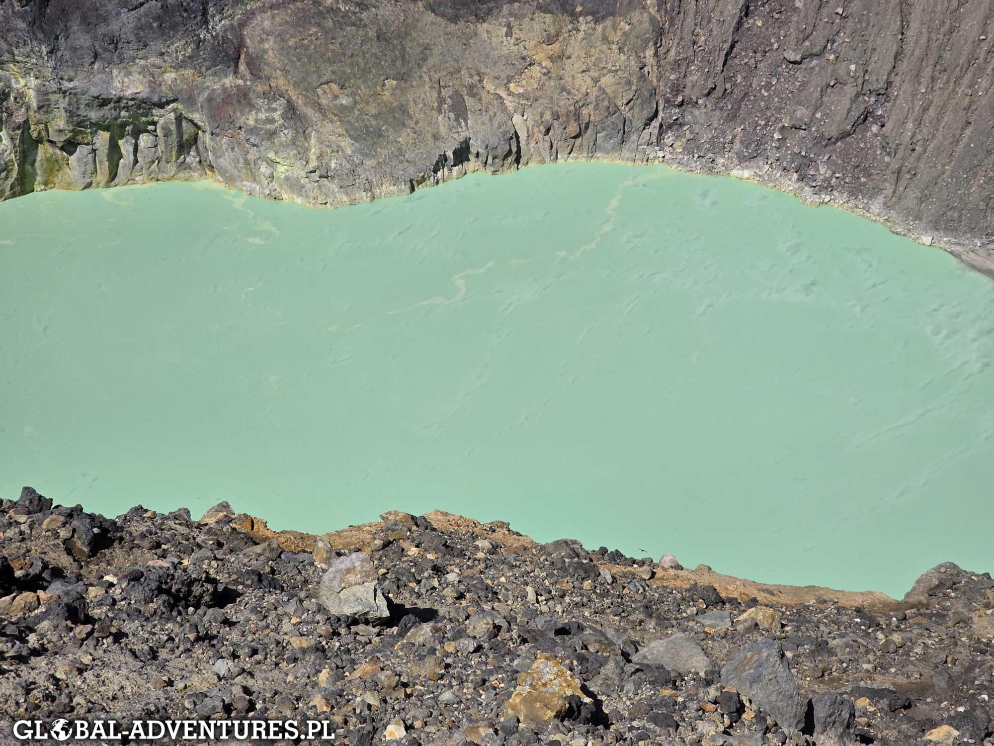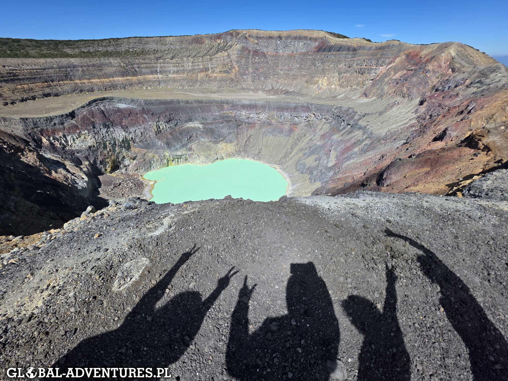 Pogoda idealna, słońce, trochę wiatru, ale widoki rekompensują wszystko. W kraterze intensywnie niebieska woda, lekko bulgocząca. Dookoła inne wulkany. Stajemy, patrzymy, przybijamy sobie piony. Spędzamy tam około 30 minut.