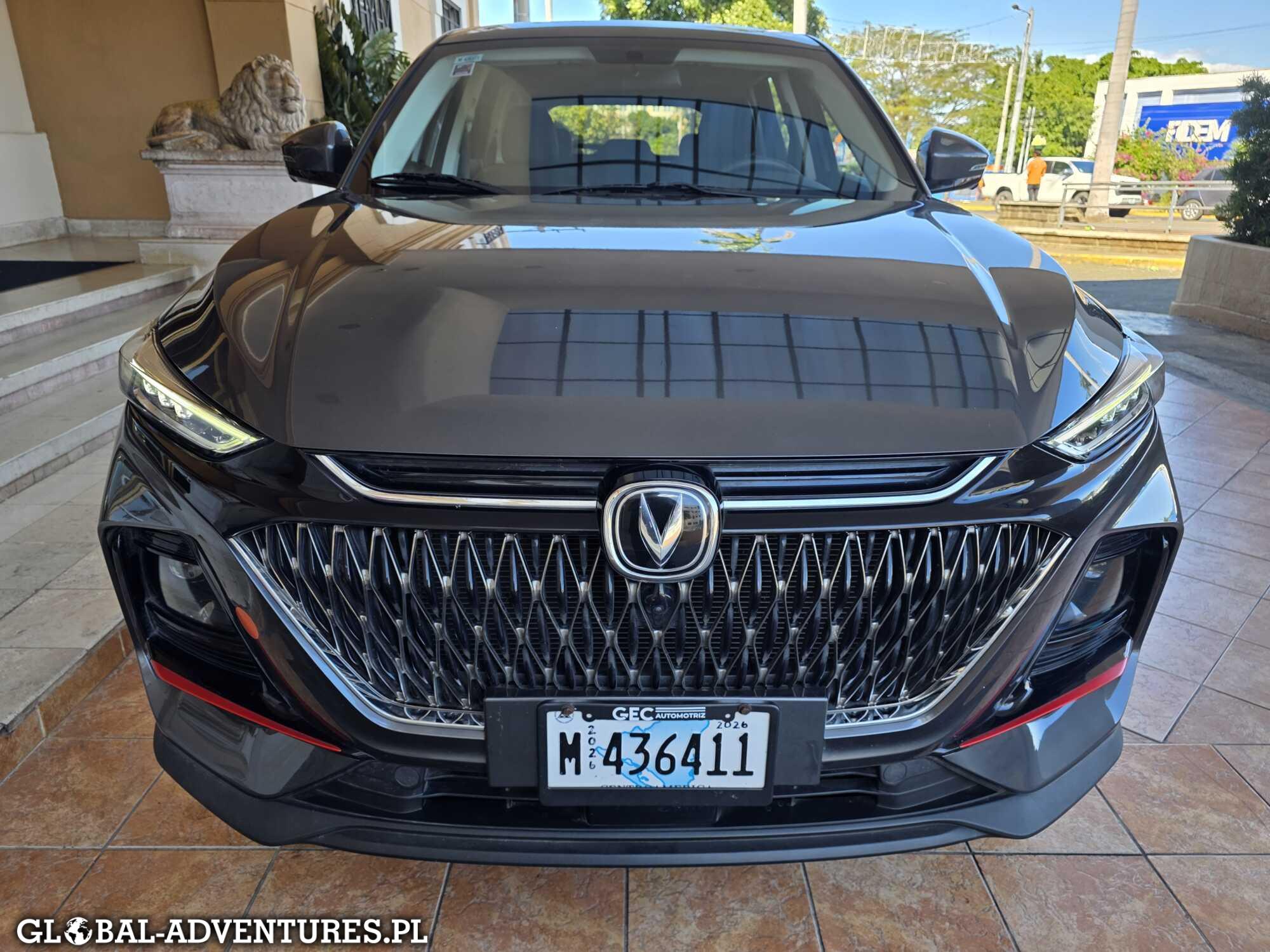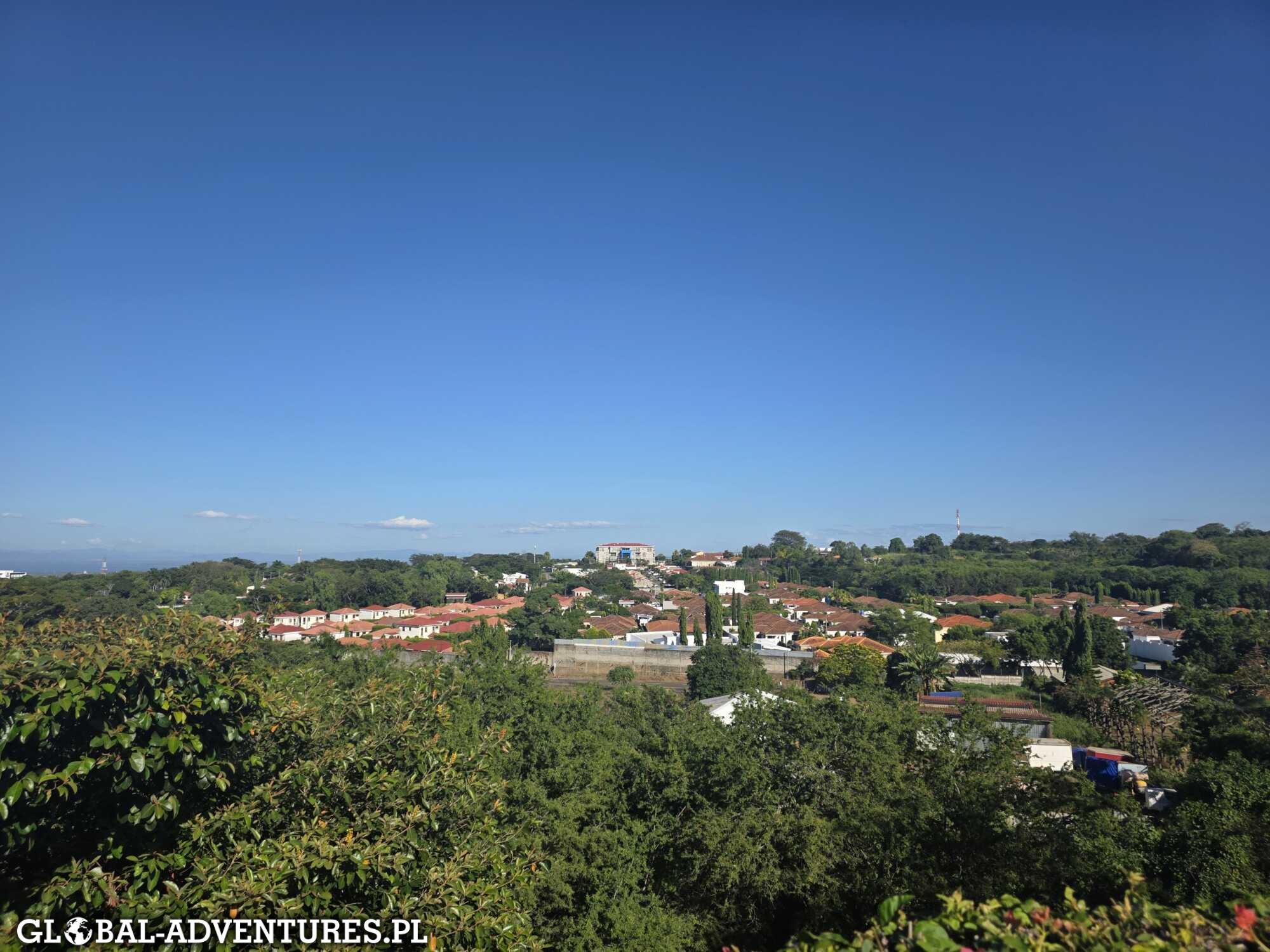 Po 50 minutach lotu, około 11:00, lądujemy w Managua. Na granicy: „bardzo ważne karteczki” z samolotu, na które nikt nawet nie patrzy. Pieczątki do paszportów, zero pytań i 10 USD od osoby za wjazd. Wynajem auta — szok cenowy. Dwa razy drożej niż w Salwadorze: 120 USD za dobę. Jedyny plus — auto trochę większe. Marka chińska, nawet nie wiemy jaka. Pakujemy się i jedziemy do miasta. Od razu widać różnicę. Więcej hałasu, większa bieda, sporo ludzi żebrzących na światłach. Temperatura totalnie szalona dochodzi do 37 stopni . Dojeżdżamy do hotelu Princess Hilton Managua (teoretycznie klimatyczny), ale okolica słaba, dużo śmieci i bezdomnych. W pokoju maga słaby zapach i kurz — prosimy o zmianę. Jest trochę lepiej, ale przy naszych alergiach to nie ma sensu. Bez problemy anulują rezerwacje i oddają całe środki. Szybka decyzja: przenosimy się do DoubleTree by Hilton Managua najnowszy hotel w mieście. Jakościowo zupełnie inny poziom. Zostajemy. Szybki lunch i ruszamy dalej.