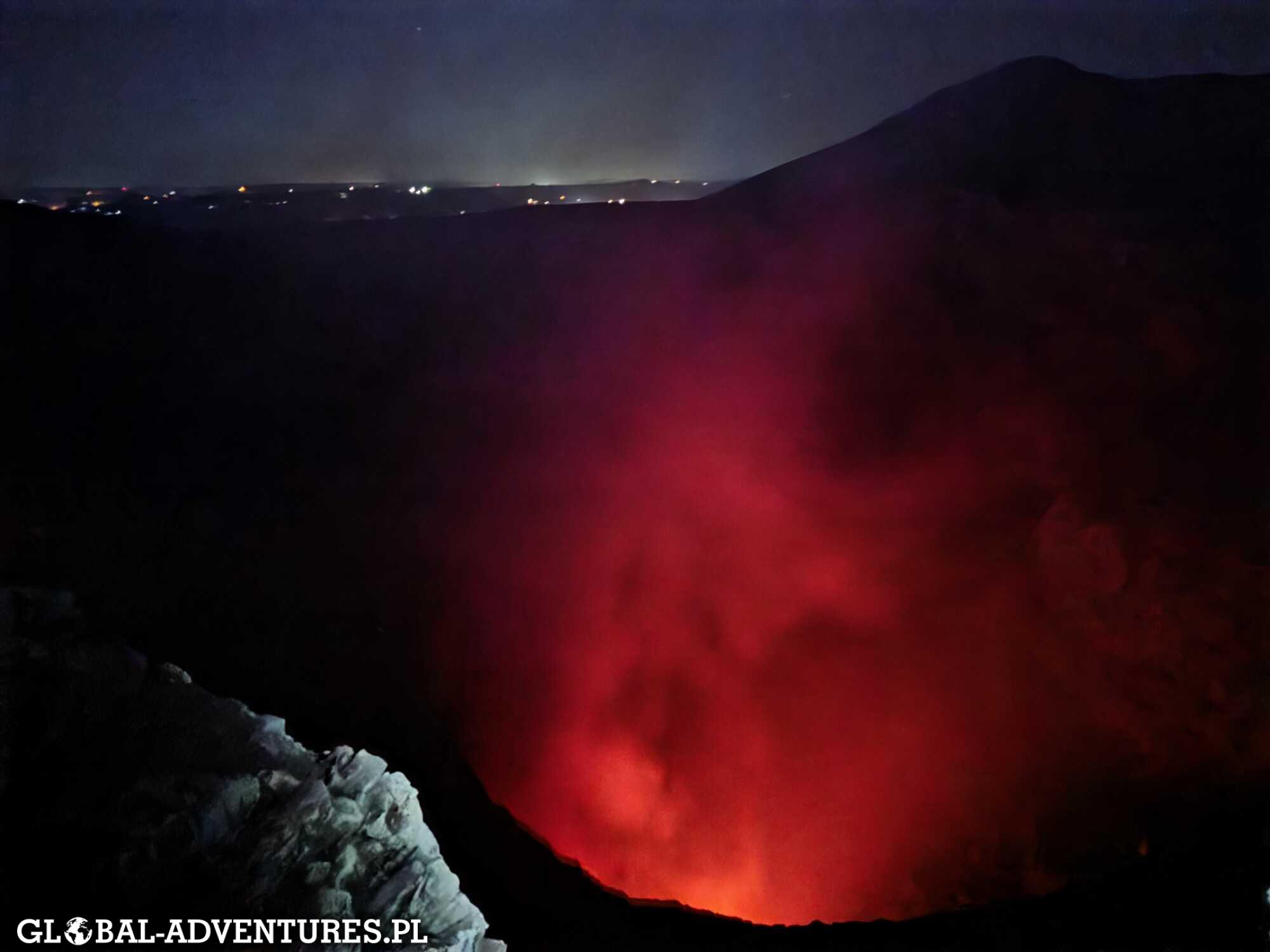 Kolejny punkt: Volcán Masaya. Pod koniec listopada był zamknięty przez erupcje, teraz jest aktywny, ale dostępny. Wjeżdżamy jako ostatni samochód dnia. I to, co widzimy wieczorem, robi robotę: bulgoczący krater, unosząca się świetlista mgła, noc i ogień. Dla samego tego widoku warto było przyjechać do Nikaragui.