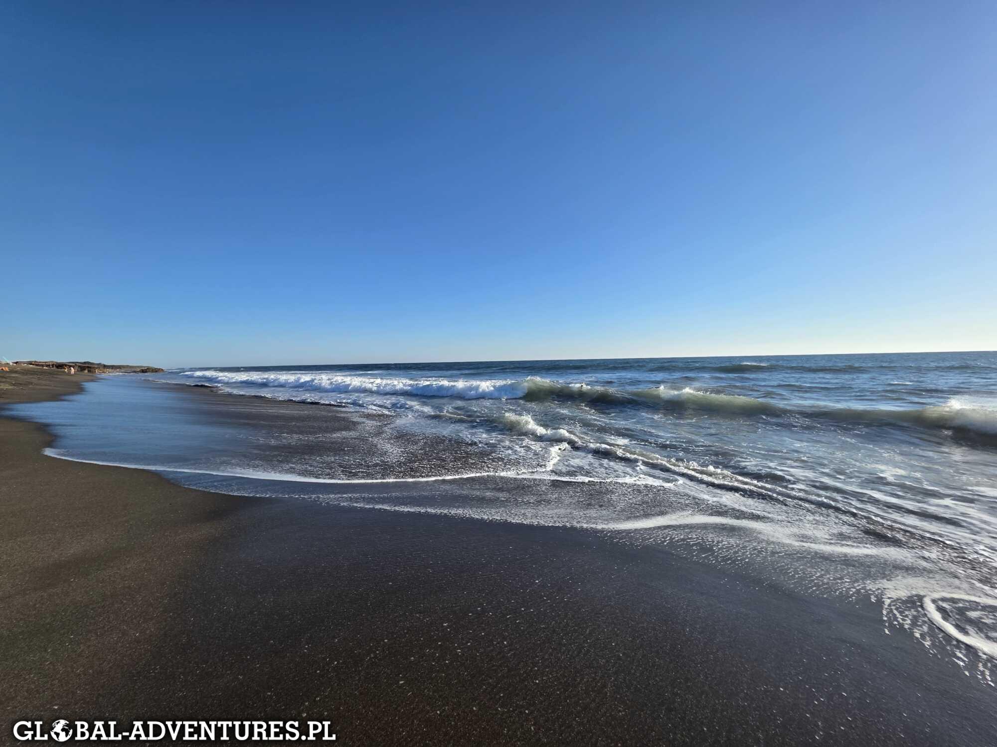 Około 13:00 zaczynamy zejście. W dół już dużo szybciej — około 45 minut, na luzie. Wracamy do auta i bez dłuższego postoju kierujemy się w stronę Pacyfiku. I to był strzał w dziesiątkę. Mamusia znajduje mega miejscówkę nad oceanem: boho vibe, dobre jedzenie, DJ grający na żywo, świetna atmosfera. Jemy pyszną rybę, siedzimy nad samą wodą i oglądamy pływające wieloryby.. wow…. Na koniec dnia wchodzimy do oceanu i skaczemy w falach aż do zachodu słońca. Czarny, wulkaniczny piasek, kolor oceanu, soczysta zieleń dookoła i słońce nisko nad horyzontem. Widok petarda. Około 18:00 ruszamy z powrotem, przed 20:00 jesteśmy w hotelu. Szybkie pranie, ogarniamy się i jeszcze wyskakujemy na kolację. To był mocny dzień — dużo emocji, dużo bodźców, dużo kontrastów.