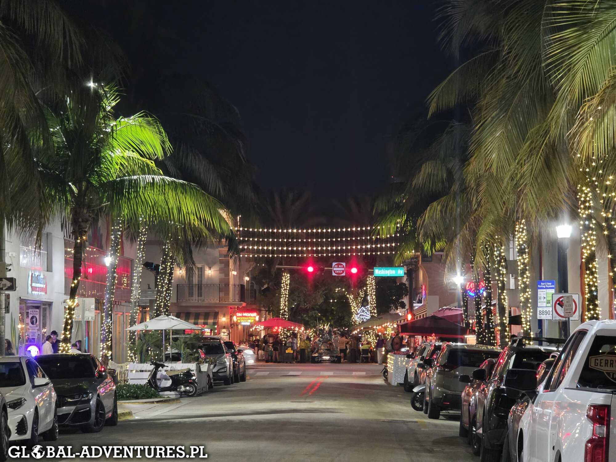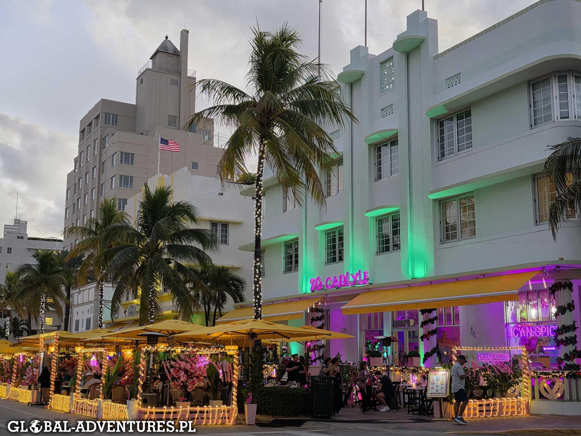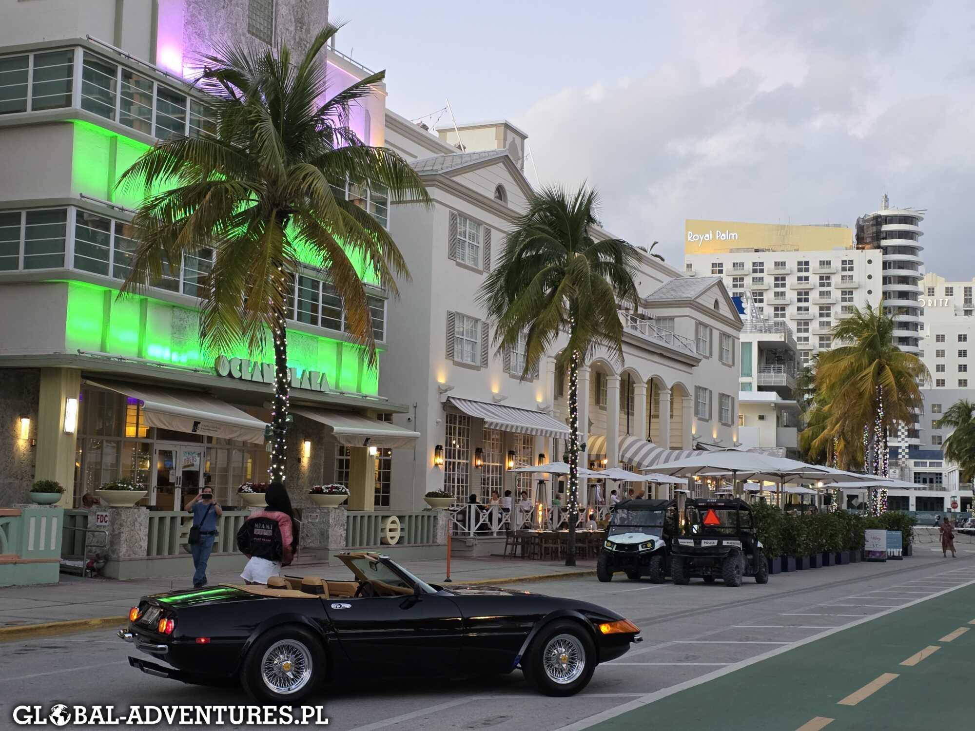 Miami Beach, trochę plaża, Ocean Drive i okolica. Po drodze szybkie zakupy w sklepie, potem kolacja we włoskiej restauracji. Jest już 23:30.