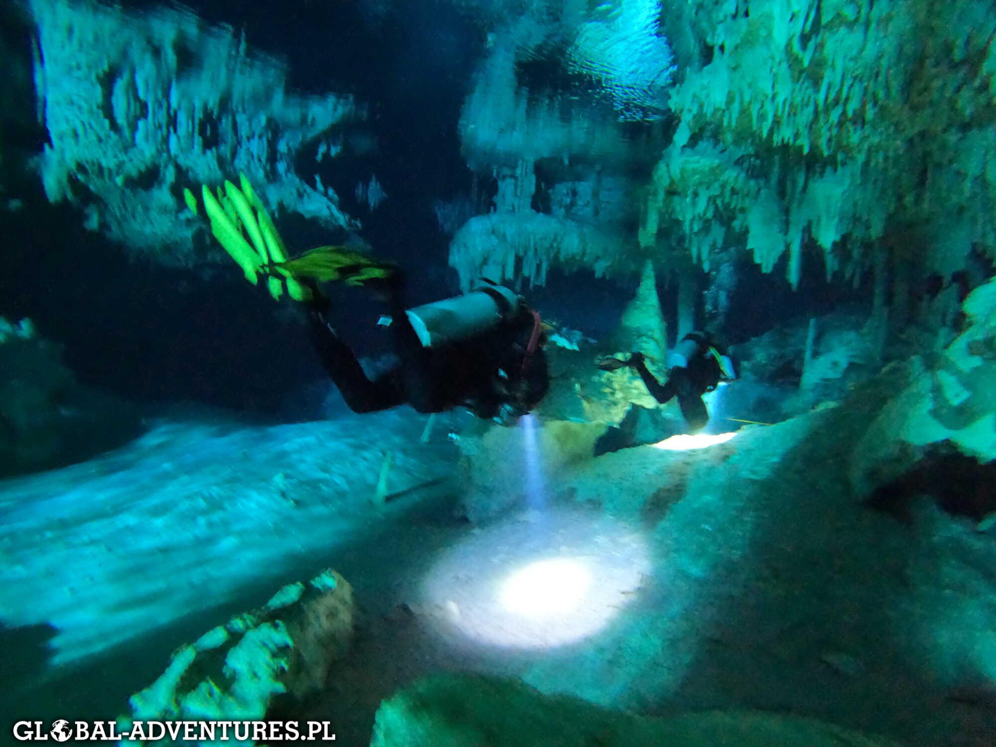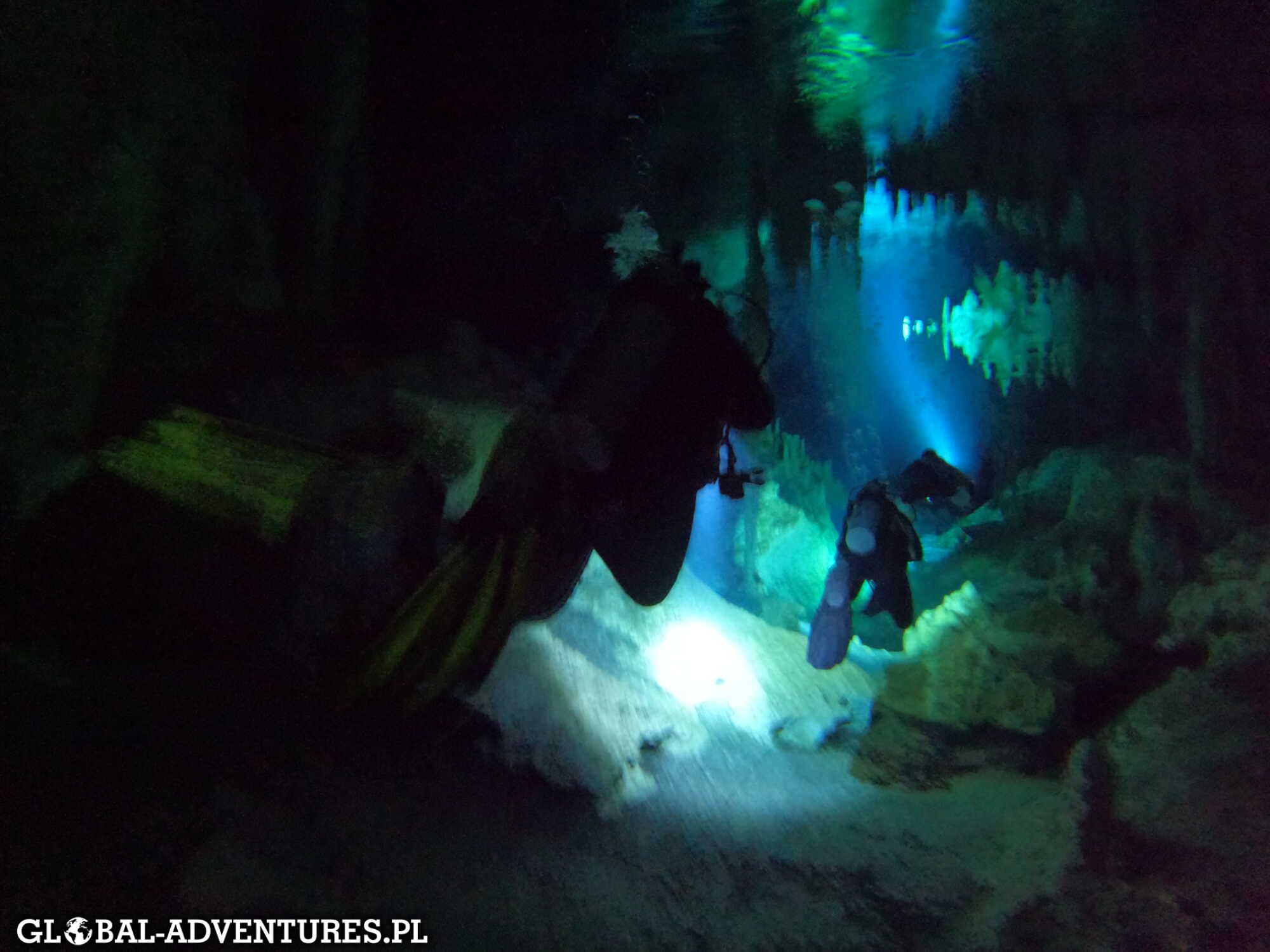 Nurkowaliśmy tam dwa razy, na dwóch różnych trasach. Było to nasze pierwsze nurkowanie w cenotach i od razu wiedzieliśmy, że to coś zupełnie innego niż nurkowanie oceaniczne. Bardziej spokojne, bardziej „do środka”.