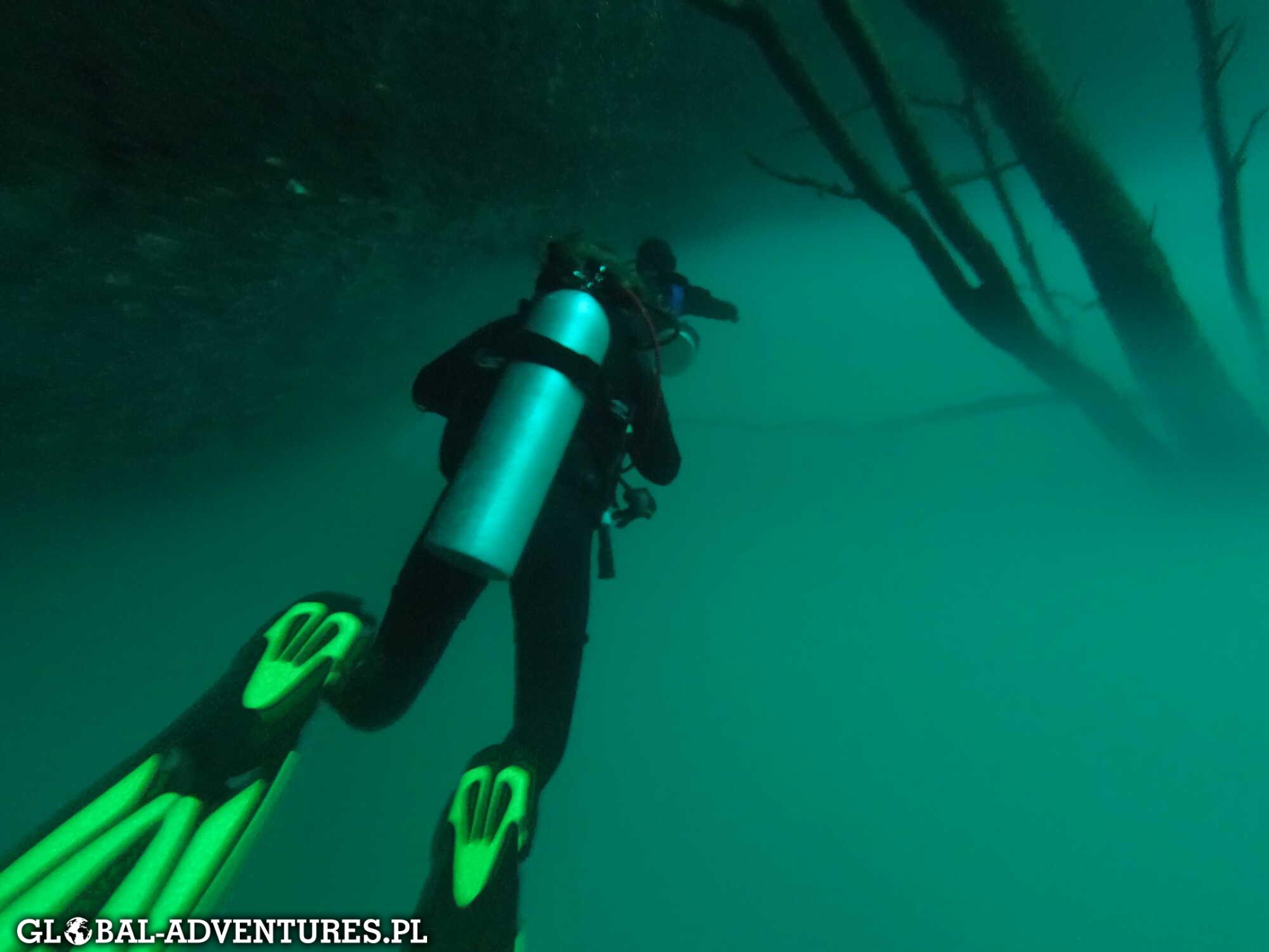 Zanurzamy się w krystalicznie czystej, słodkiej wodzie. Na górze temperatura wody około 25 stopni, bardzo rześko jak na nurkowanie . Już od pierwszych minut wiadomo, że to będzie zupełnie inne nurkowanie niż w oceanie.