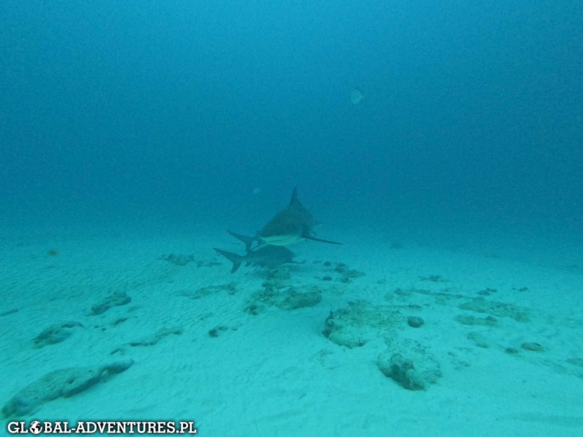W końcu decydujemy się. Wsiadamy na łódź i wypływamy kawałek od plaży w Playa del Carmen. Po chwili wskakujemy do wody i schodzimy na około 25 metrów. Przez mniej więcej 30 minut nurkujemy razem z grupą rekinów Bull Shark. To, co dzieje się pod wodą, jest trudne do opisania. One są ogromne, masywne, bardzo spokojne w ruchach, ale jednocześnie czuć ich siłę. Wiemy, że to jedne z najbardziej niebezpiecznych rekinów na świecie. Adrenalina jest non stop, ale jednocześnie jesteśmy maksymalnie skupieni . Każdy ruch robimy świadomie, kontrolujemy każdy oddech. Strach puszcza w momencie kiedy opadamy w dół i widzimy pierwsze sztuki.