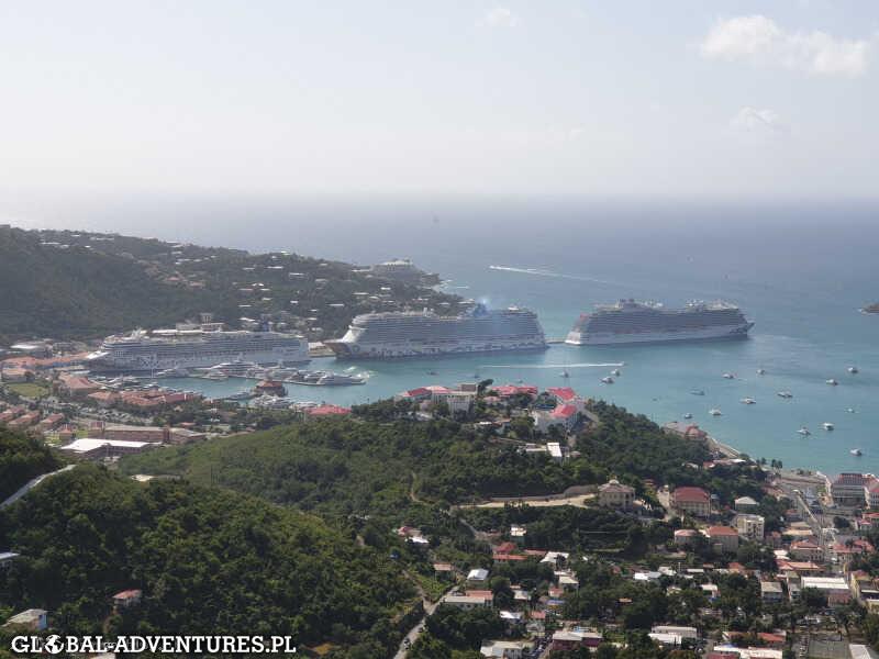 Dopływamy do wyspy St. Thomas już o 7. Śniadanie i opuszczamy statek. Chcemy wypożyczyć samochód niestety wszystko zajęte. Bierzemy taksówkę z objazdem po wyspie. Odwiedzamy punkty widokowe i to jest całkiem fajne. Widoki na pozostałe wyspy robią wrażenie. Jedziemy po stronie oceanu atlantyckiego i morza karaibskiego. Poza tym na wyspie za wiele nie ma. Jedziemy na plaże Magens pomoczyć tyłki w morzu karaibskimi. Ciekawostka jest ze jest ruch lewostronny i kierownice we wszystkich samochodach sa tez po lewej stronie. Ludzie mili ale mega napaleni na kasę. Koniec końców jedna z najbrzydszych wysp na Karaibach jakie odwiedziliśmy. O 18 odpływamy… dziś Pierwszy dzień świąt tutaj świętuje się najbardziej…!