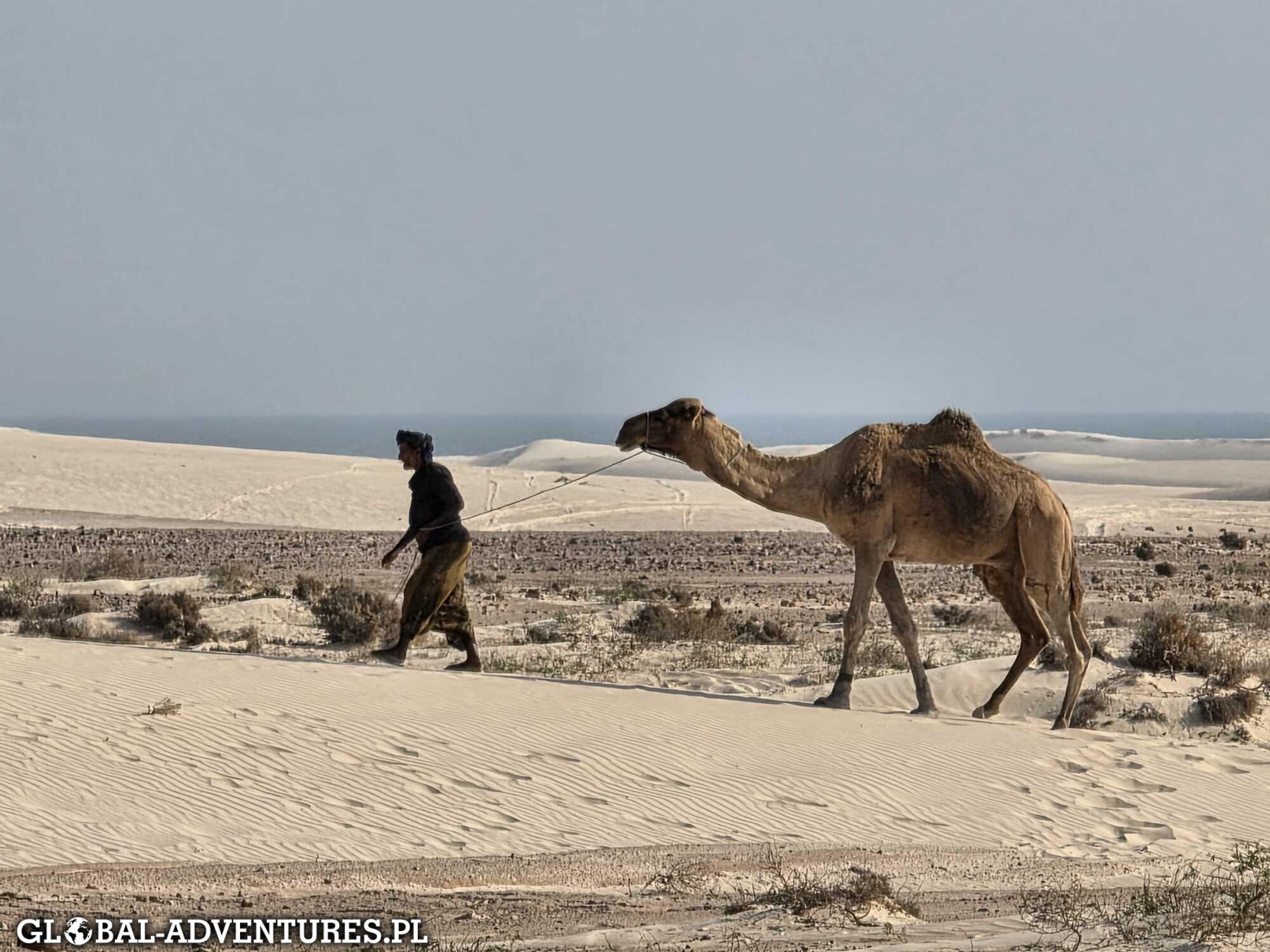 Po drodze zatrzymujemy się przy starych radzieckich czołgach, które przypominają o burzliwej historii wyspy – niezwykły, niemal surrealistyczny widok pośród pustynnych krajobrazów. Chwilę później spotykamy wielbłądy przechadzające się wzdłuż drogi – ciekawskie, zaglądają nawet do samochodu, jakby chciały nas przywitać po swojemu.