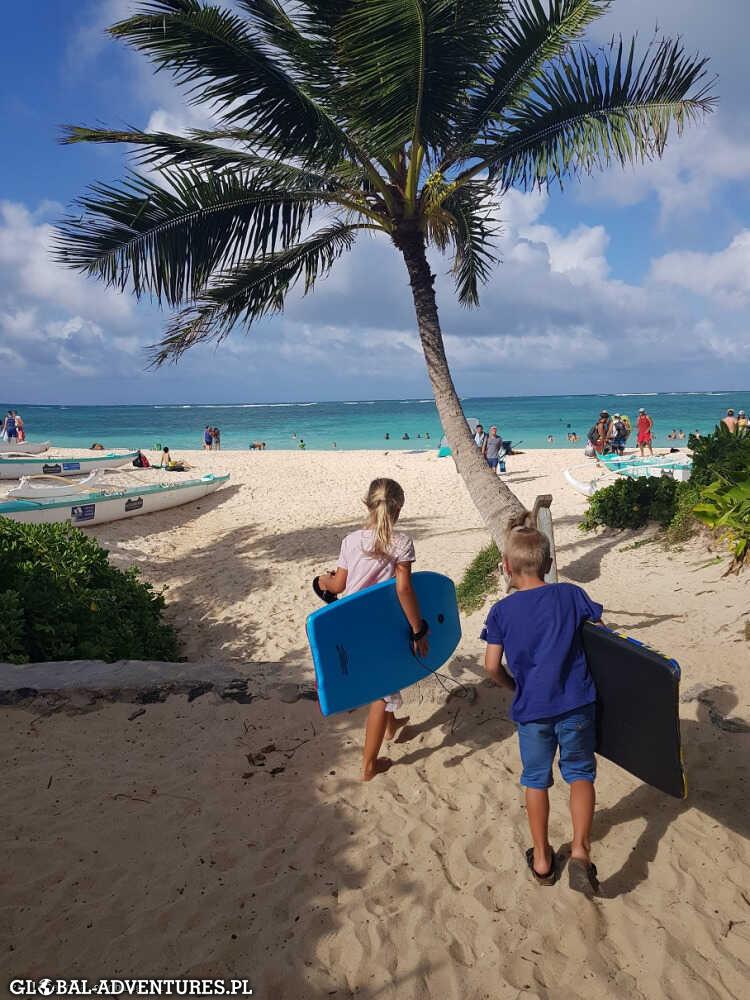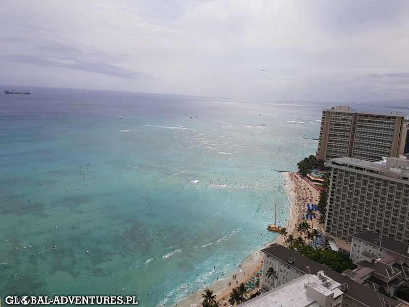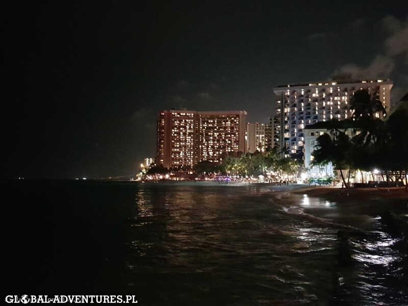 W Honolulu zamawiamy Uber… ale przyjeżdża za mały na nas i nasze graty.. szybka sam się odwołuje i po chwili przyjeżdża inny większy. Za autobus liczą sobie 12$ za osobę, dzieci tyle samo, Uber 21$ za wszystkich. Jedziemy do Hyatt Regency Waikiki Beach. Check-in na 39 piętrze z widokiem na ocean i dzielnicę Waikiki, zostaniemy na 5 nocy. Obiad i lecimy na plaże, na pierwsze zanurzenie w Nord Pacific Ocean… fale duże, serferow mnóstwo… woda ciepła. Dzieciaczki przeszczęśliwe. Klimaty trochę jak na Copacabana. Wieczorem jeszcze spacer po Waikiki boulvar, kolacja w japońskiej knajpie i po 23 czyli po 2 w nocy czasu Las Vegas dzieciaczki padają…