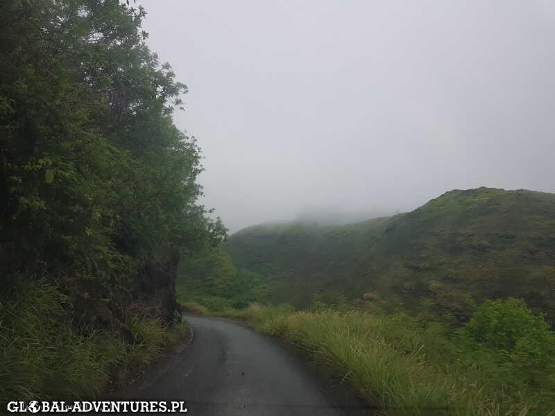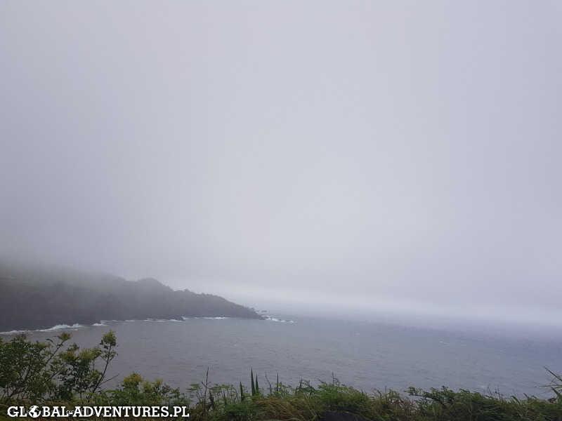 Mieliśmy lecieć na Big Island przelecieć się nad wulkanem Kiluea, ale 2 dni temu skończyła się erupcja i w ogóle nie widać lawy dodatkowo Hector zostawił po sobie chmury burzowe i siąpi z nich lub leje. Jedziemy na objazd północnej części Maui. Droga jest malownicza, na klifach, czasami przechodzi tylko w jeden pas… trzeba było raz cofać przed kolumna samochodów z przeciwka, innym razem trzeba było przejechać przez rwący strumyk także Nissan zdał egzamin… Było fajnie.