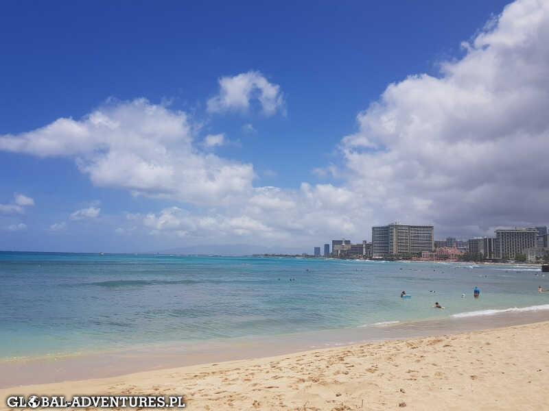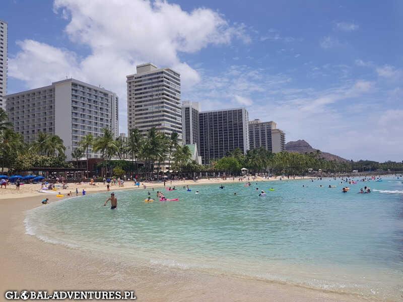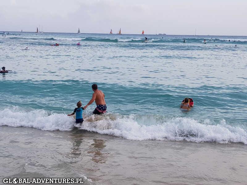 Mięliśmy zostać na Waikiki Beach jeden dzień ale ze nie udało się wynająć samochodu z dnia na dzień, wiec zostajemy 2 dni. Dzieciaczki tego powodu przeszczęśliwe, uwielbiają pływać i skakać na dużych falach a tych tutaj nie brakuje. Dla nas tez ostatecznie trochę chiloutu się przyda. Waikiki najbardziej znana plaża jak nie najbardziej znane miejsce na całych Hawajach, jak dla nas trochę przereklamowane… zbyt duży tłok (mnóstwo chińczyków, Japończyków i Koreańczyków), a morze i piasek tez nie takie mega zajebiste. Copacabana czy Miami Beach znacznie lepsze…