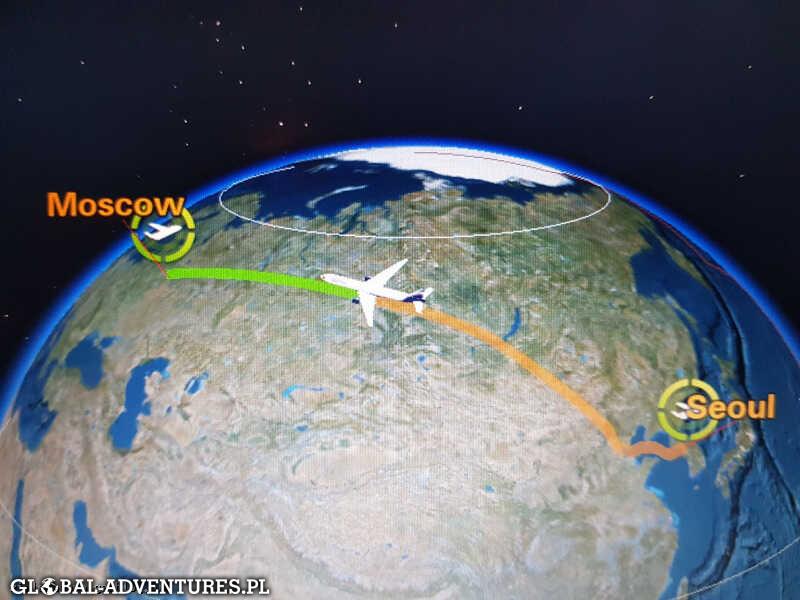 Jedziemy autobusem na lotnisko, jeszcze na koniec koreańska kuchnia, check-in i wsiadamy do samolotu. Dziś Aeroflot. Siedzimy wszystko gotowe ale samolot się nie rusza… żadnych informacji nie widomo co jest grane, stoimy 3 godziny w zamkniętym samolocie i nagle zaczynamy cofać, ustawiamy się do startu i lecimy… lot wg szacunków 8,5 godziny. Ostatecznie kapitan nie powiedział dlaczego czekaliśmy, steward tylko napomknął ze niby była burza na Chinami i nie mogliśmy lecieć. W miedzy czasie 2 rzędy za nami, awanturuje się pijana Rosjanka, dostaje ostrzeżenia ale nie reaguje, biorą ja na koniec samolotu i tam spędza ponad polowe lotu.