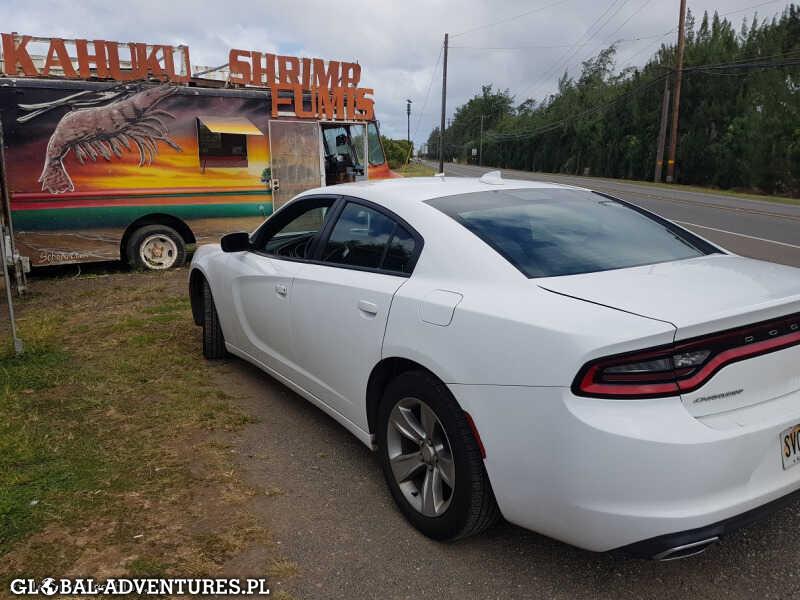 Odbieramy samochód iście amerykański Dogde Charger i śmigamy po wyspie. Pierwszego dnia wg wskazówek zegara drugiego w przeciwnym. Odjeżdżając od Honolulu wyspa wygląda świetnie. Jest piękna… woda oblewająca do okola wyspę jest mega, przyroda jest zabójczo zielona. Wszystko wygląda tak jak powinna wyglądać na tropikalnych wyspach… odwiedzamy: Hanauma Bay- z piękna rafa koralowa i krystaliczna woda, TidePool, Waimanalo Bay, Sanset Beach, Shrimp Truck- najlepsze krewetki, plantacje ananasów Dole i plantacje kawy, Perl Harbor. Trasa wokół wyspy mega widokowa. Przejechaliśmy łącznie 230 mil… jutro lecimy dalej