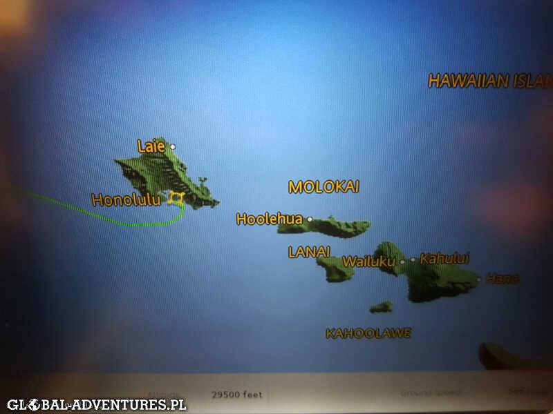 Wstajemy o 6 i ok. 7 rano jedziemy 10 minut na lotnisko. Oddajemy nasza furkę… spisała się .. przejechaliśmy bardzo wygodnie prawie 2100km- zwrot samochodu wszystko bardzo sprawnie i szybko. Jeszcze śniadanie i o 9.20 liniami Hawaian Airlnes odlatujemy do Honolulu 🙂 Lot 6 godzin, bardzo przyjemny i miły… miejsca dużo, serwis super. Przestawiamy zegarki jeszcze dodatkowo -3 h i teraz mamy -12H do Polski. Jesteśmy dokładnie po drugiej stronie Swiata.