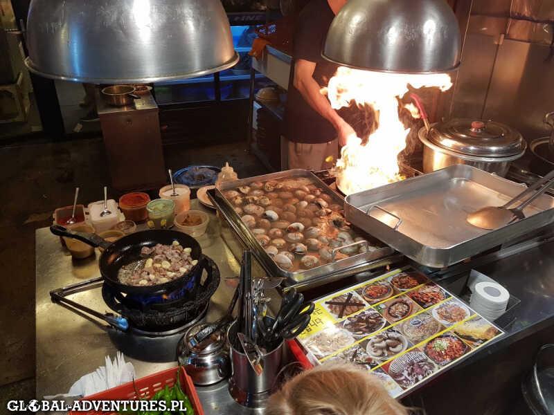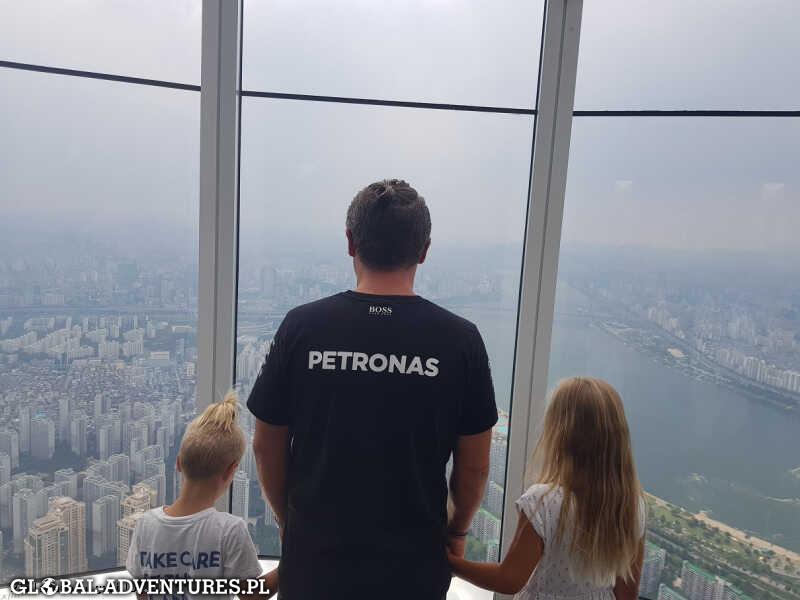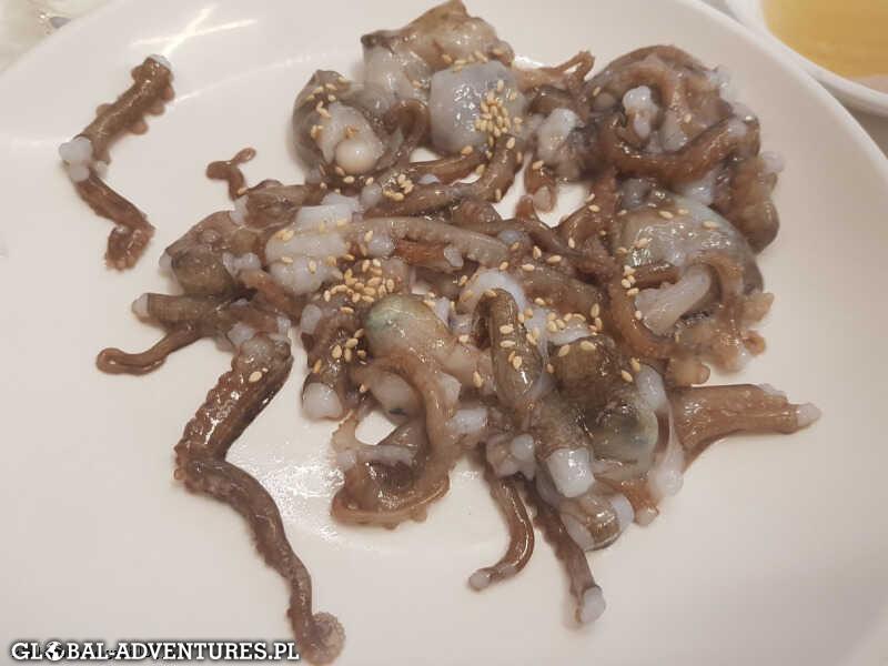 Przemieszczamy się głownie metrem lub pieszo. Pierwszego dnia ogarniamy Sky Seul. Jeden z najwyższych budynków świata z najwyższym przeszklonym tarasem widokowymi i Fish market, gdzie próbujemy żywej ośmiornicy… kilka sekund wcześniej wyciągniętej z wody:) Łącznie przechodzimy 17km. O 23 wracamy do hotelu