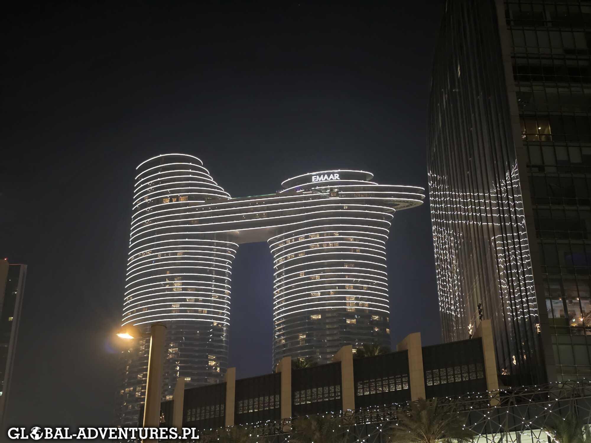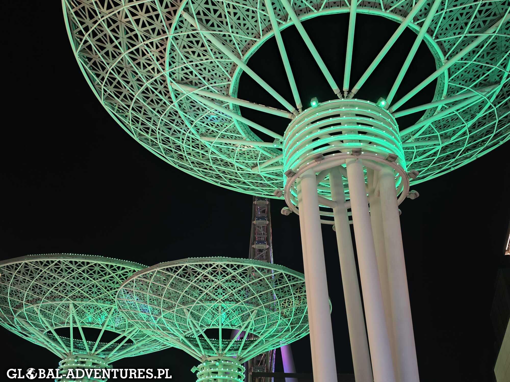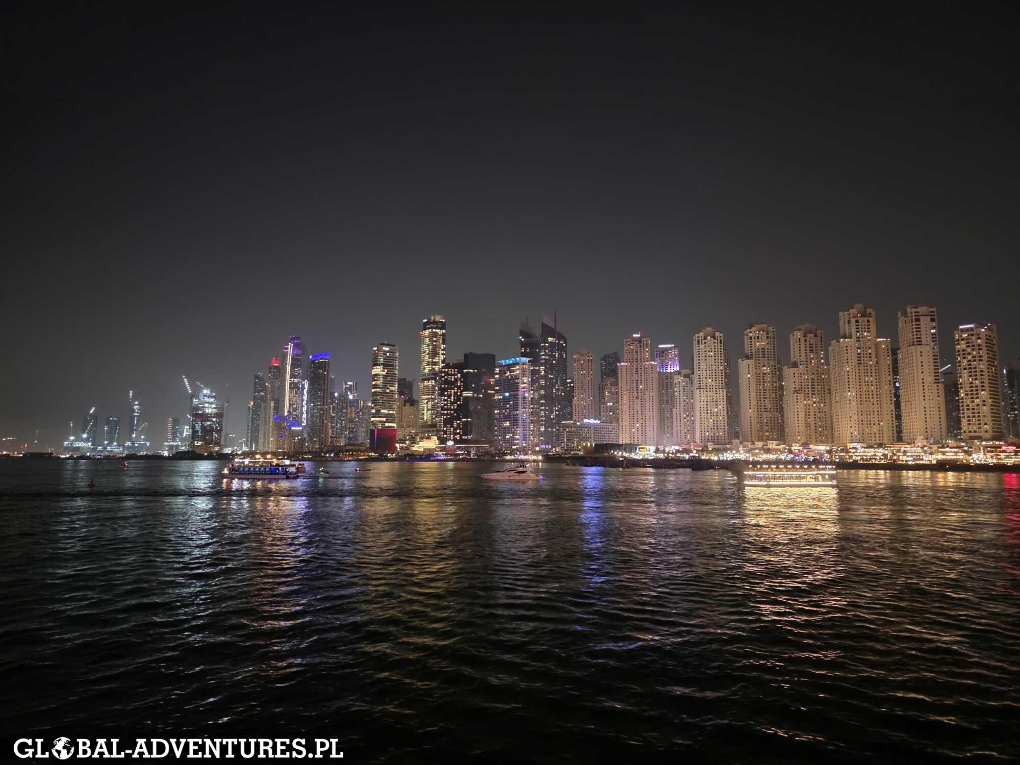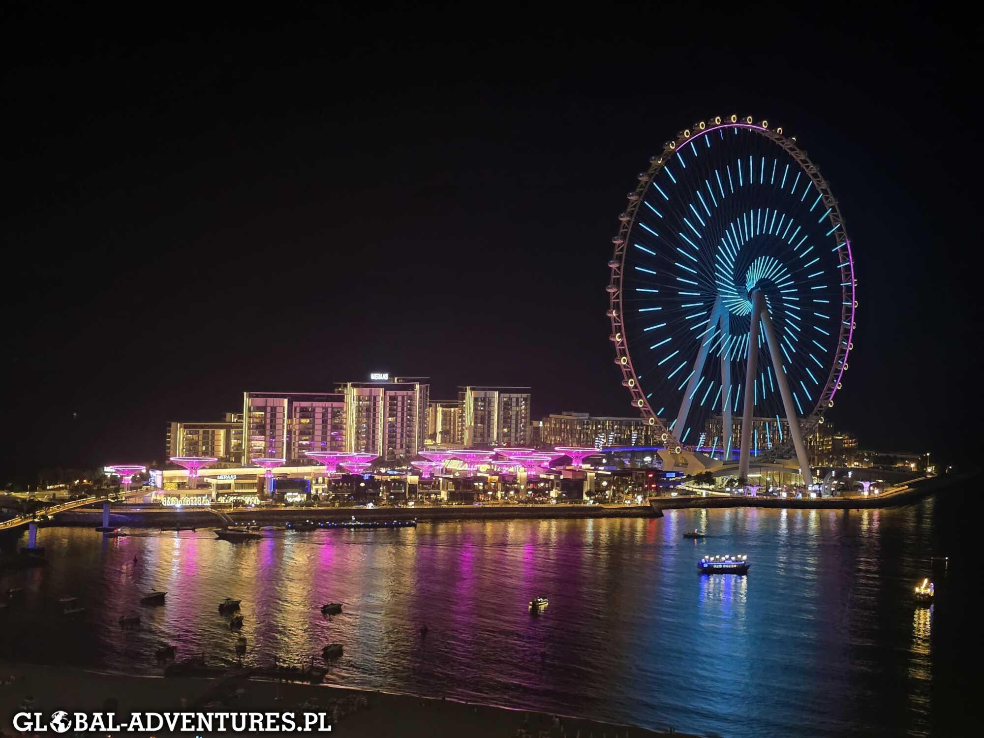 Potem spacer po JBR i Bluewaters. Kupujemy bilety i jedziemy największym kołem świata, czyli Ain Dubai. Około 40 minut spokojnej jazdy z widokiem na rozświetlony Dubaj. Widać plażę JBR, całą Palmę i hotele Atlantis The Royal oraz Atlantis The Palm.